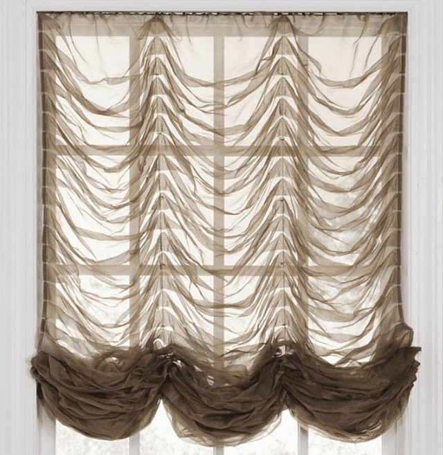 Французские шторы – это помпезный и изящный вид штор, который относится к классическим шторам и были придуманы в эпоху барокко. Основным отличием французских штор является способ их пошива, особенность которого заключается в пришивании тесьмы для штор не только по горизонтали вверху шторы, но и по вертикали, полосками, по всей ширине шторы на равных расстояниях друг от друга. Эти полоски тесьмы дают возможность драпировать штору по высоте, создавая при этом, между полосками, пышные полукруглые провисы. Обычно для такой драпировки используется тесьма до 2,5 сантиметров по ширине, способ сборки у которой, - гармошка. Наиболее подходящими для таких штор, считаются легкие однотонные ткани: шифон, вуаль, кристалон, атлас, лен.