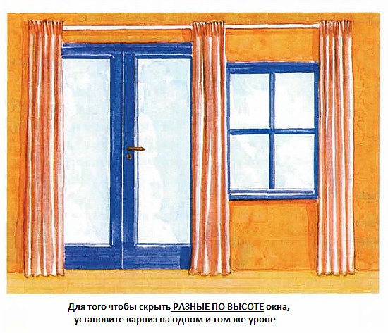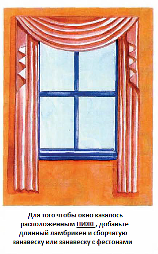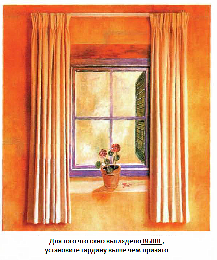 Несколько иллюстрационных советов, как с помощью правильного оформления окна устранить недостатки комнаты: