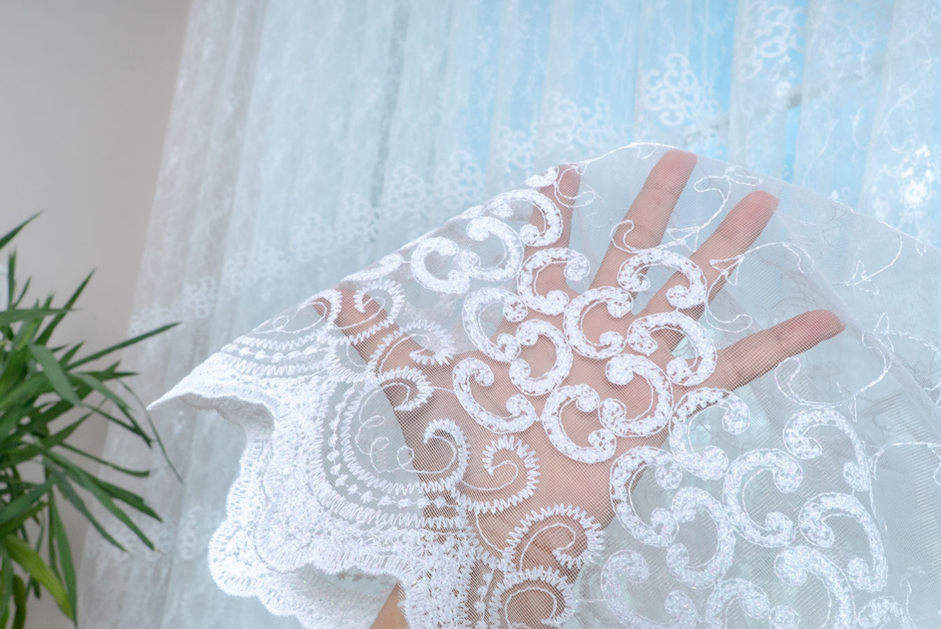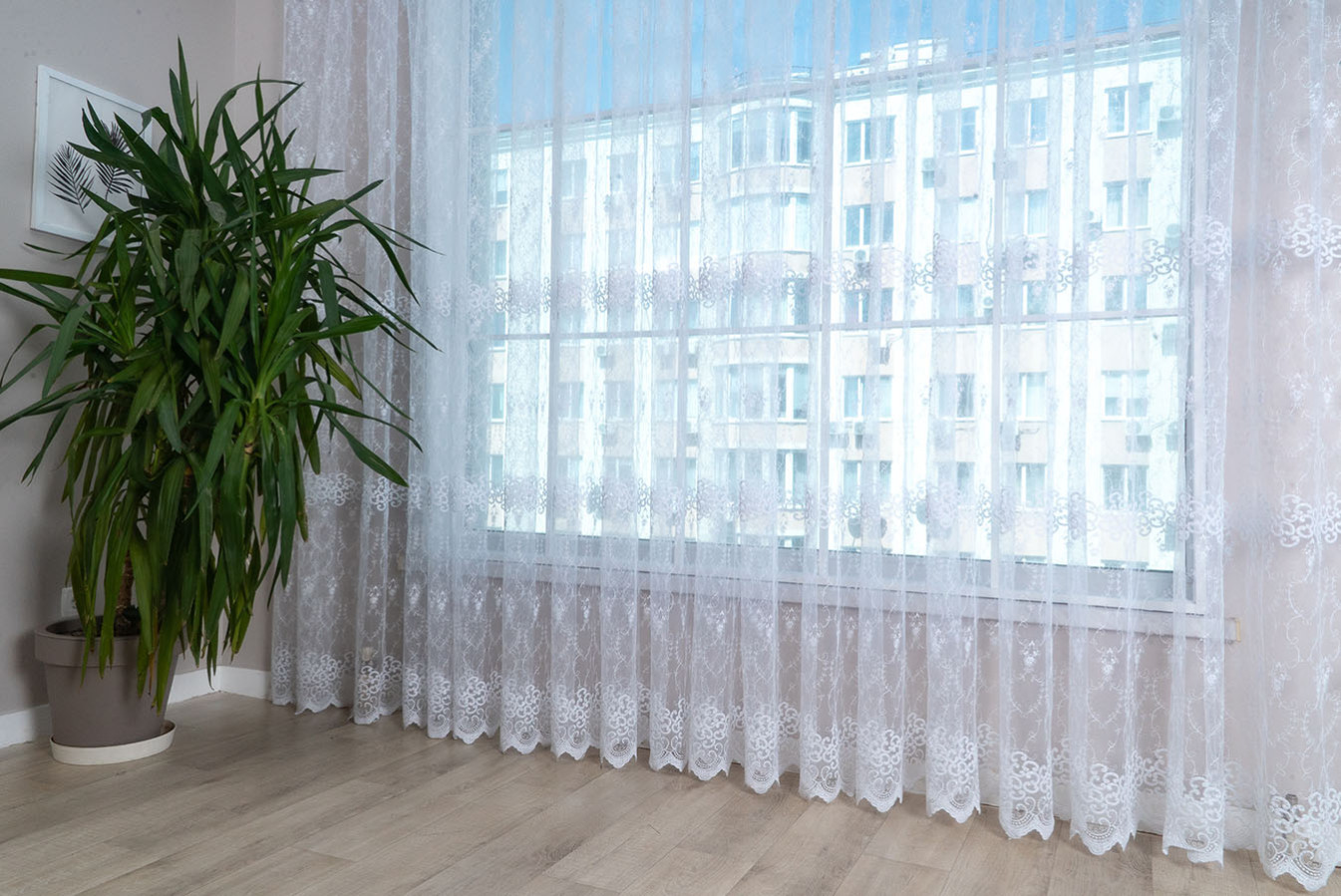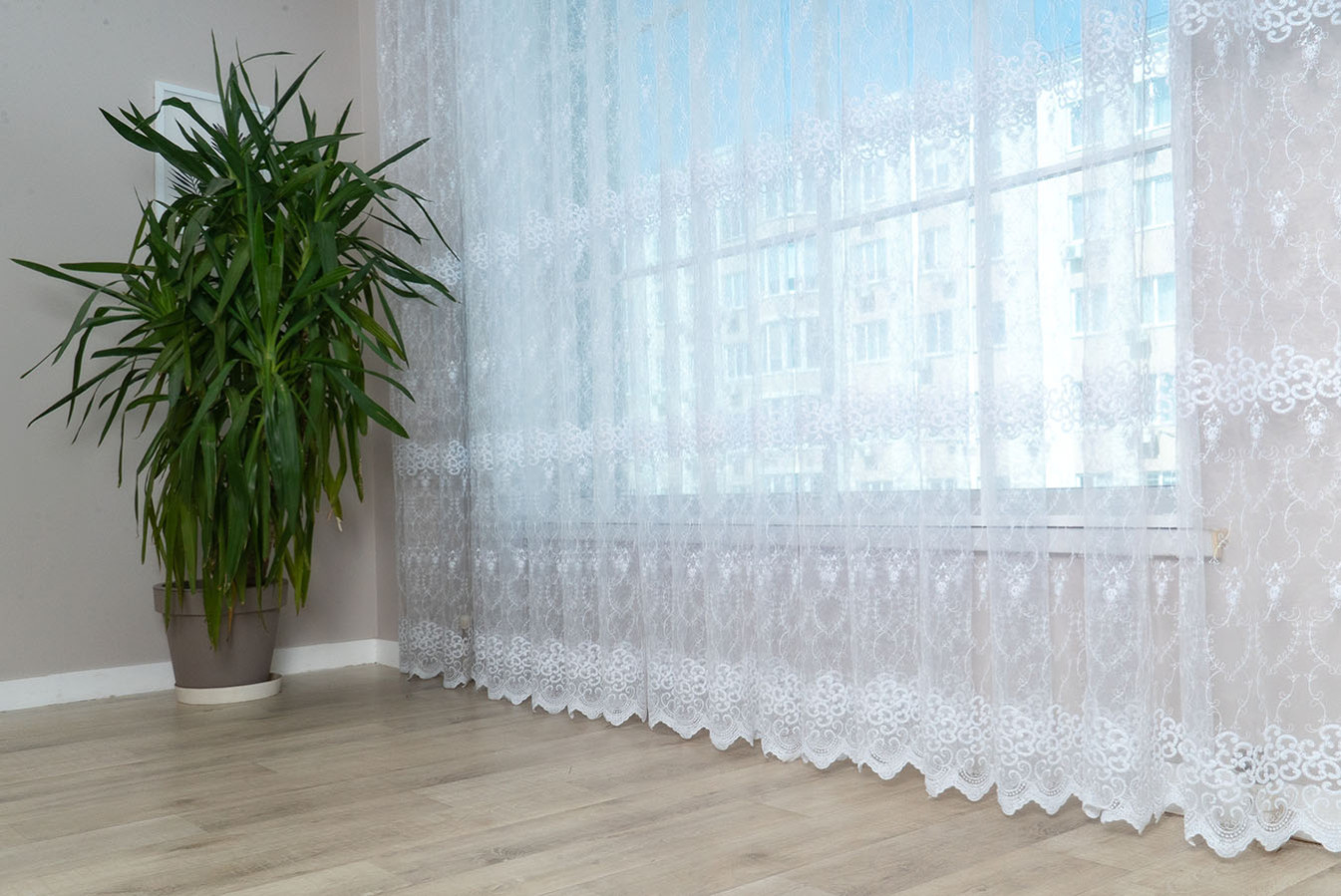 Тюль. Для визначення необхідної кількості метрів тюлю на вікно необхідно враховувати довжину карниза, щільність тюлю та густоту малюнка на тюлі. Наприклад, якщо тюль з великим малюнком, то на 1 метр карниза потрібно брати приблизно 2-2,5 м/пог матеріалу, щоб малюнок не загубився в складках і таким чином не змазався ефект від обраного тюлю. Якщо ж тюль тонкий і однотонний, його можна набирати побільше, наприклад, на 1 метр карнизу 2,5-3,5 м/пог матеріалу.