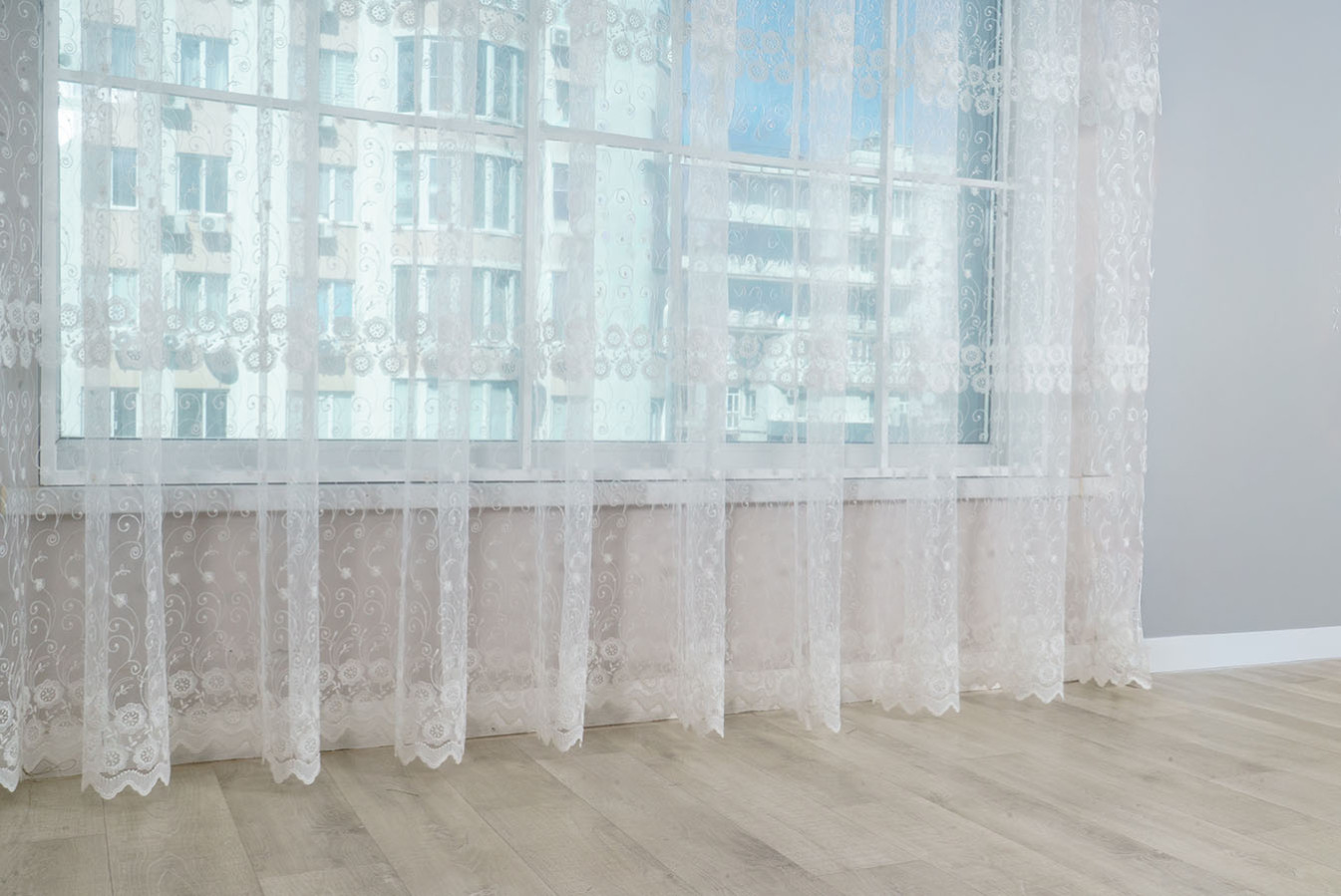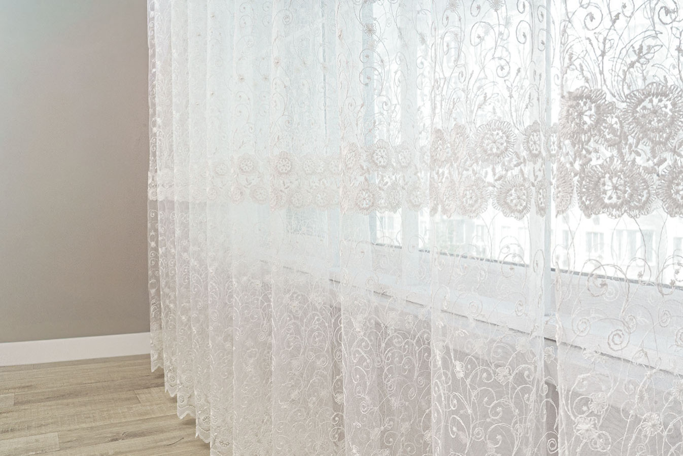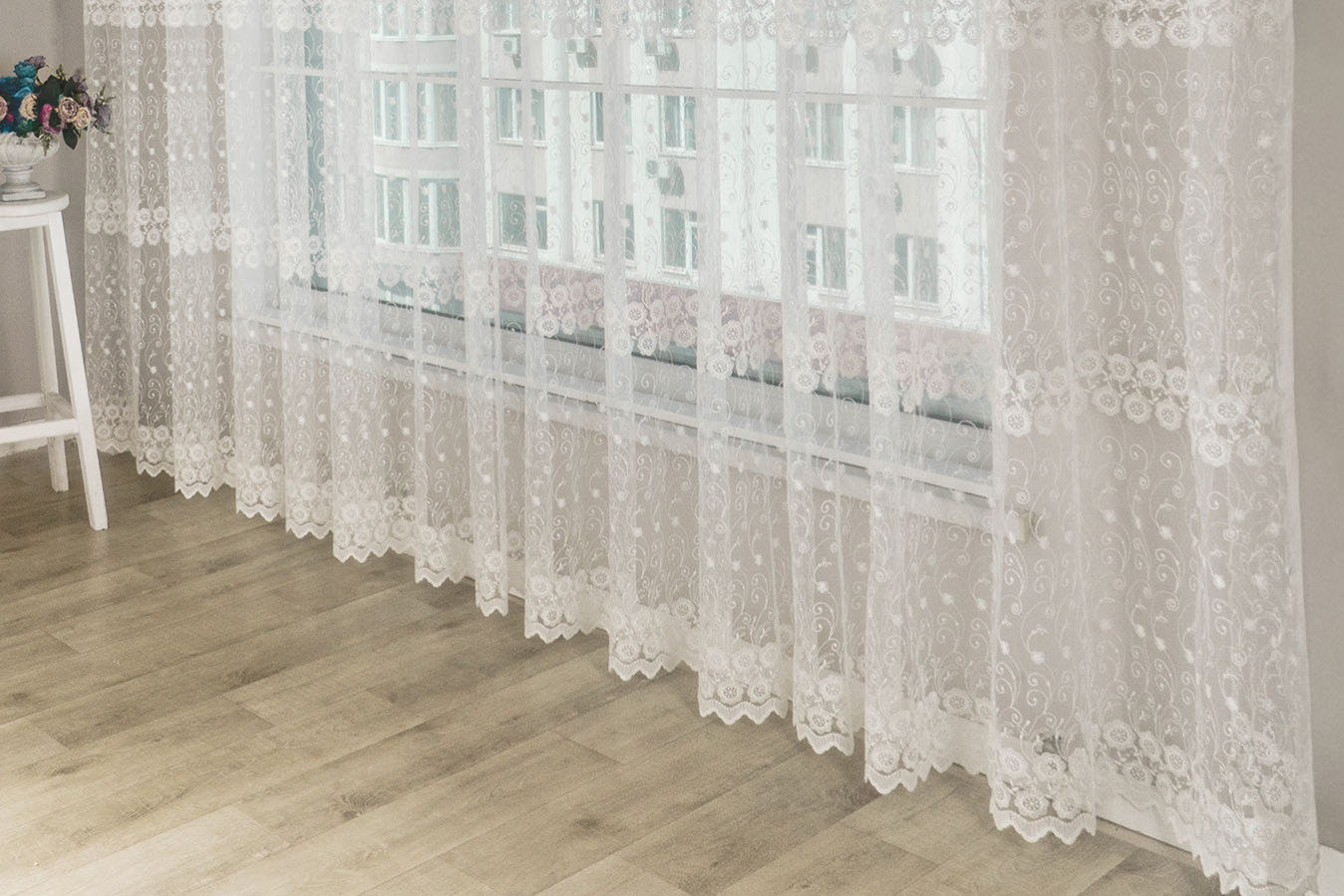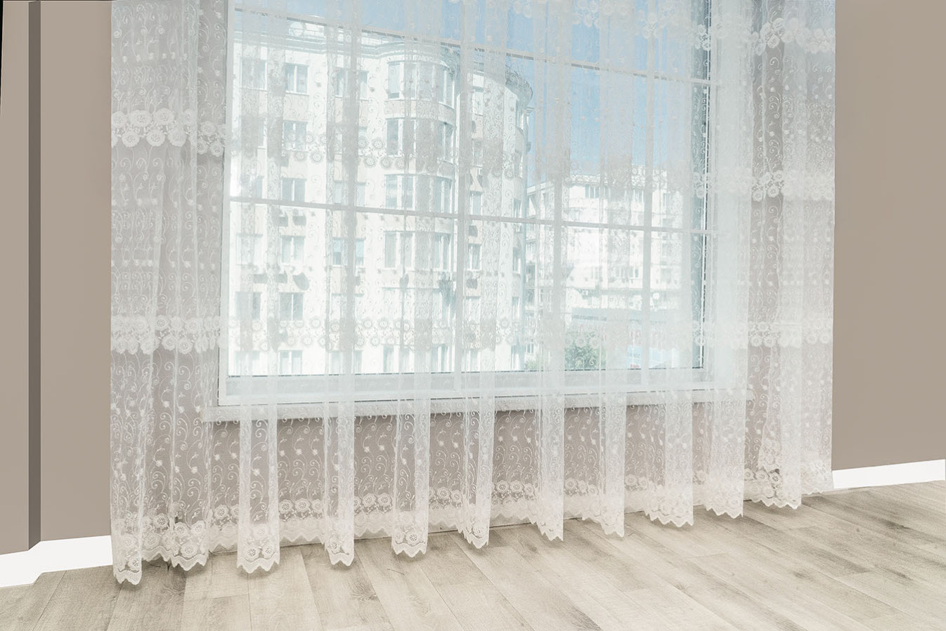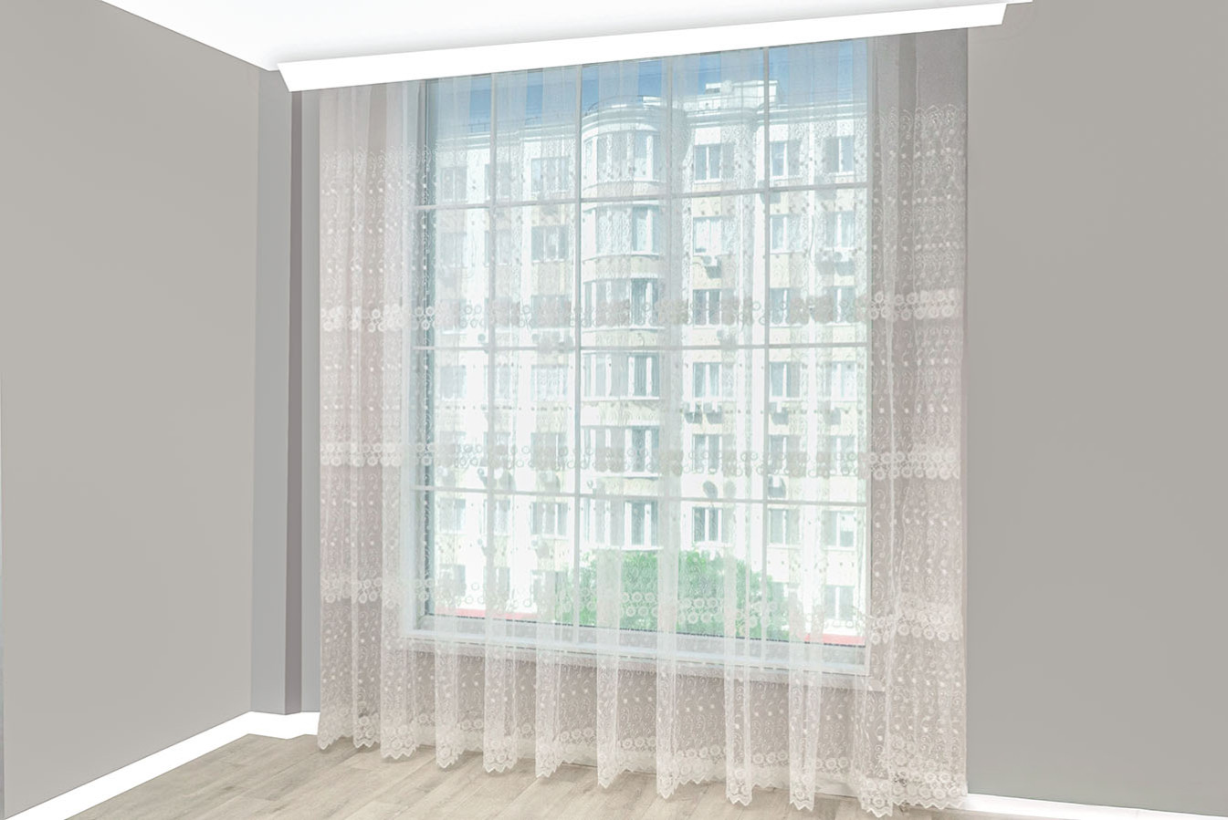 Тюль. Для визначення необхідної кількості метрів тюлю на вікно необхідно враховувати довжину карниза, щільність тюлю та густоту малюнка на тюлі. Наприклад, якщо тюль з великим малюнком, то на 1 метр карниза потрібно брати приблизно 2-2,5 м/пог матеріалу, щоб малюнок не загубився в складках і таким чином не змазався ефект від обраного тюлю. Якщо ж тюль тонкий і однотонний, його можна набирати побільше, наприклад, на 1 метр карнизу 2,5-3,5 м/пог матеріалу.