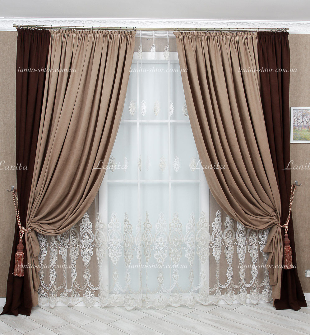 Штори. Все те саме, стосується і штор, з одним уточненням, що штори найчастіше знаходяться в відкритому стані. У такому разі складка буде густіша, відповідно штори потрібно набирати трохи менше. Наприклад, на 1м/пог менше ніж тюлю на загальній кількості.