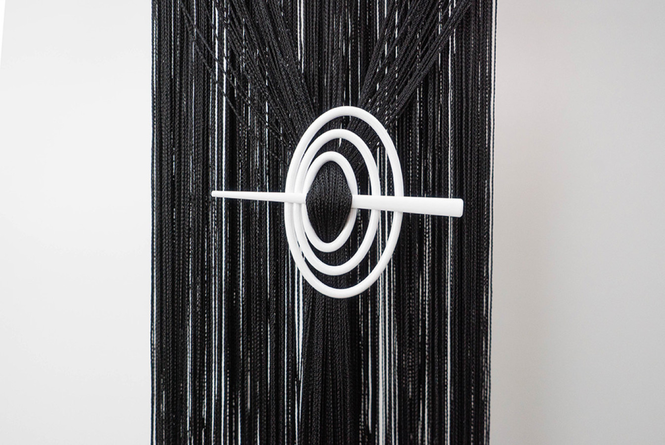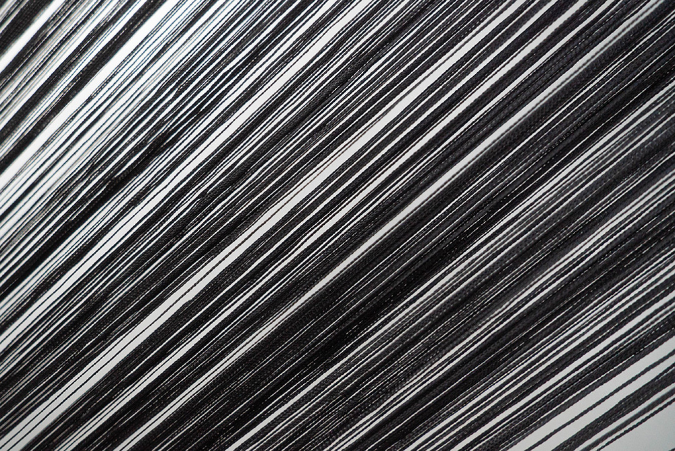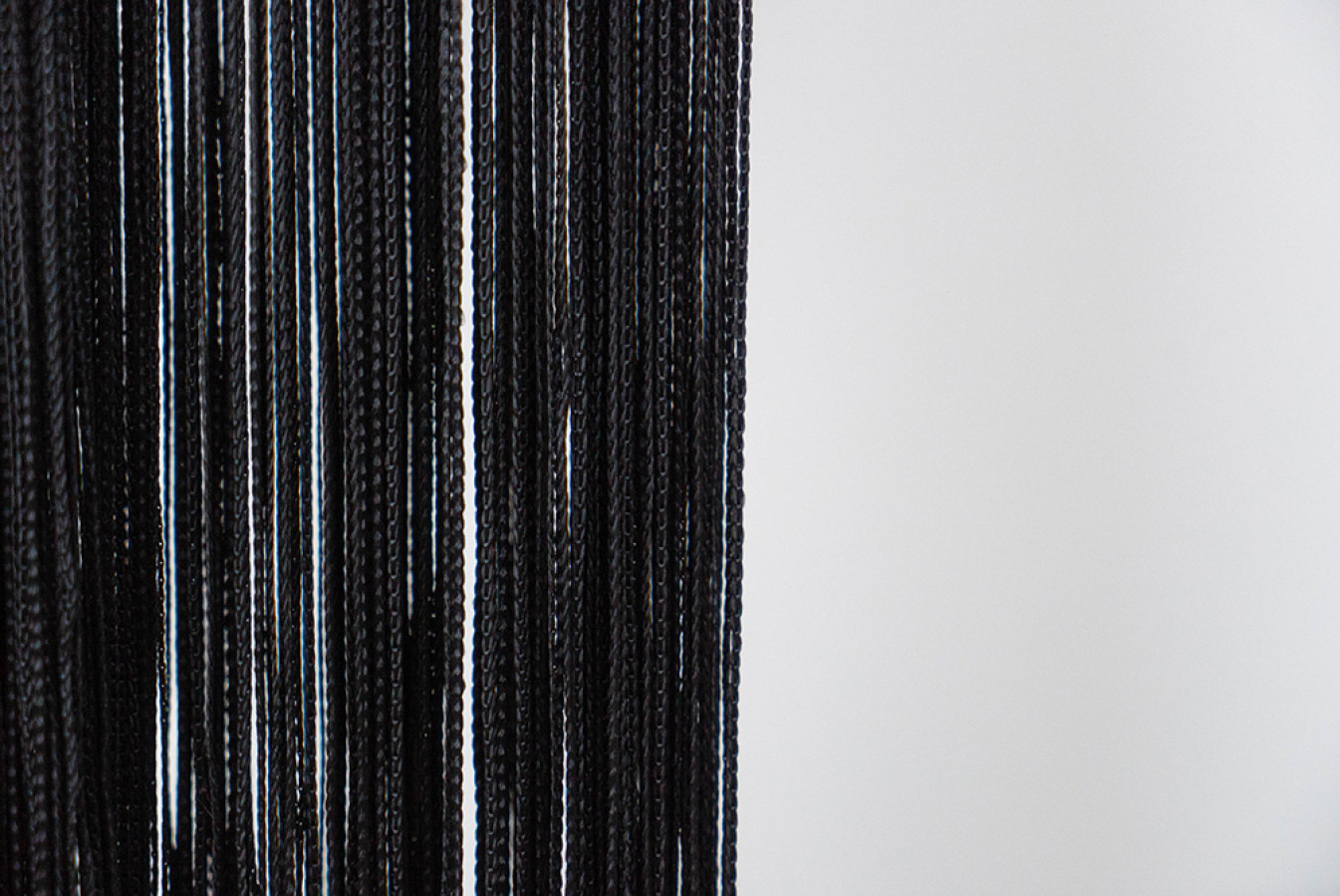 Однотонні нитяні штори чорного кольору. Структура кисеї являє собою каскад глянсових ниток, щільно сплетених у вигляді кісок. По верху виробу передбачена спеціальна тасьма-куліска, яка призначена для швидкого та легкого вдягання на карниз. Такий декор буде дуже доречним в оформленні стильних та екстраординарних інтер'єрів. А висоту цих штор-ниток ви зможете легко скоригувати за допомогою звичайних ножиць.