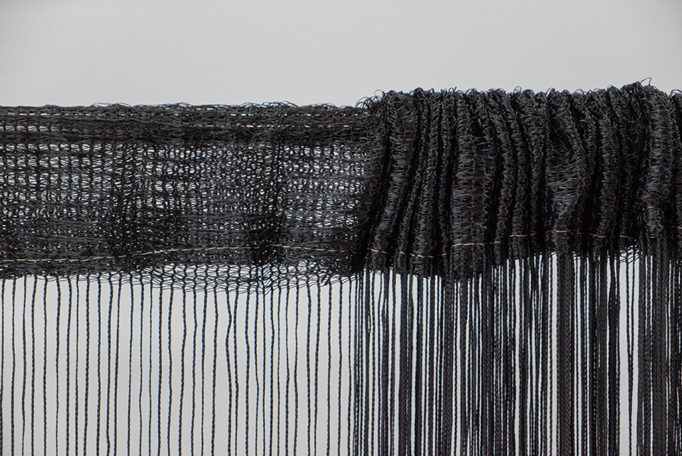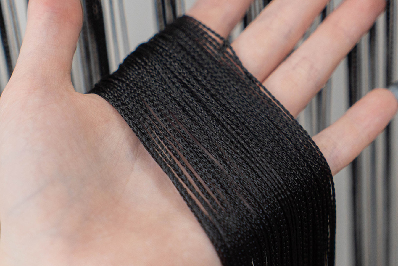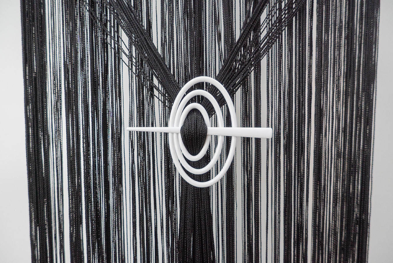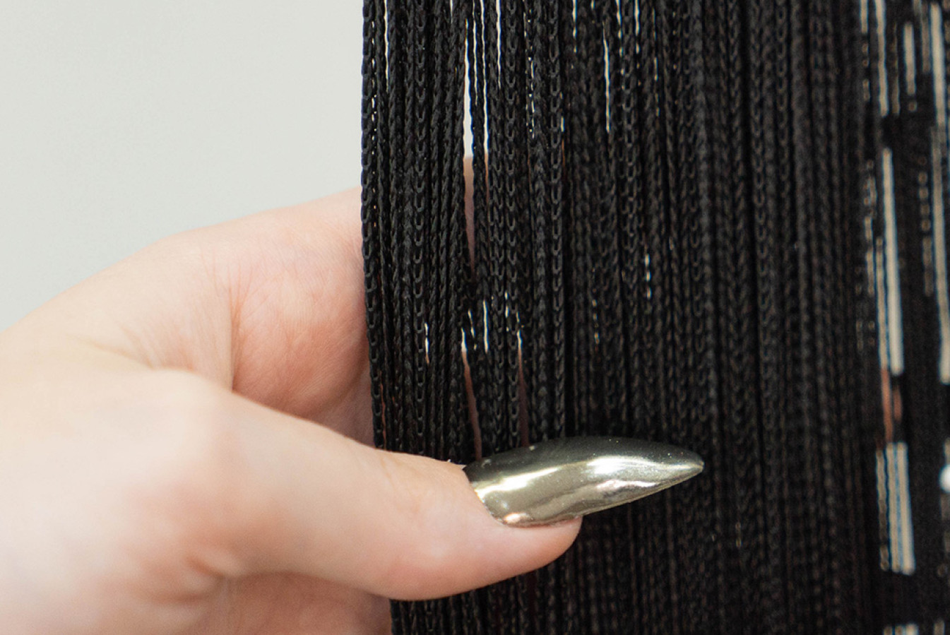 Однотонні нитяні штори чорного кольору. Структура кисеї являє собою каскад глянсових ниток, щільно сплетених у вигляді кісок. По верху виробу передбачена спеціальна тасьма-куліска, яка призначена для швидкого та легкого вдягання на карниз. Такий декор буде дуже доречним в оформленні стильних та екстраординарних інтер'єрів. А висоту цих штор-ниток ви зможете легко скоригувати за допомогою звичайних ножиць.