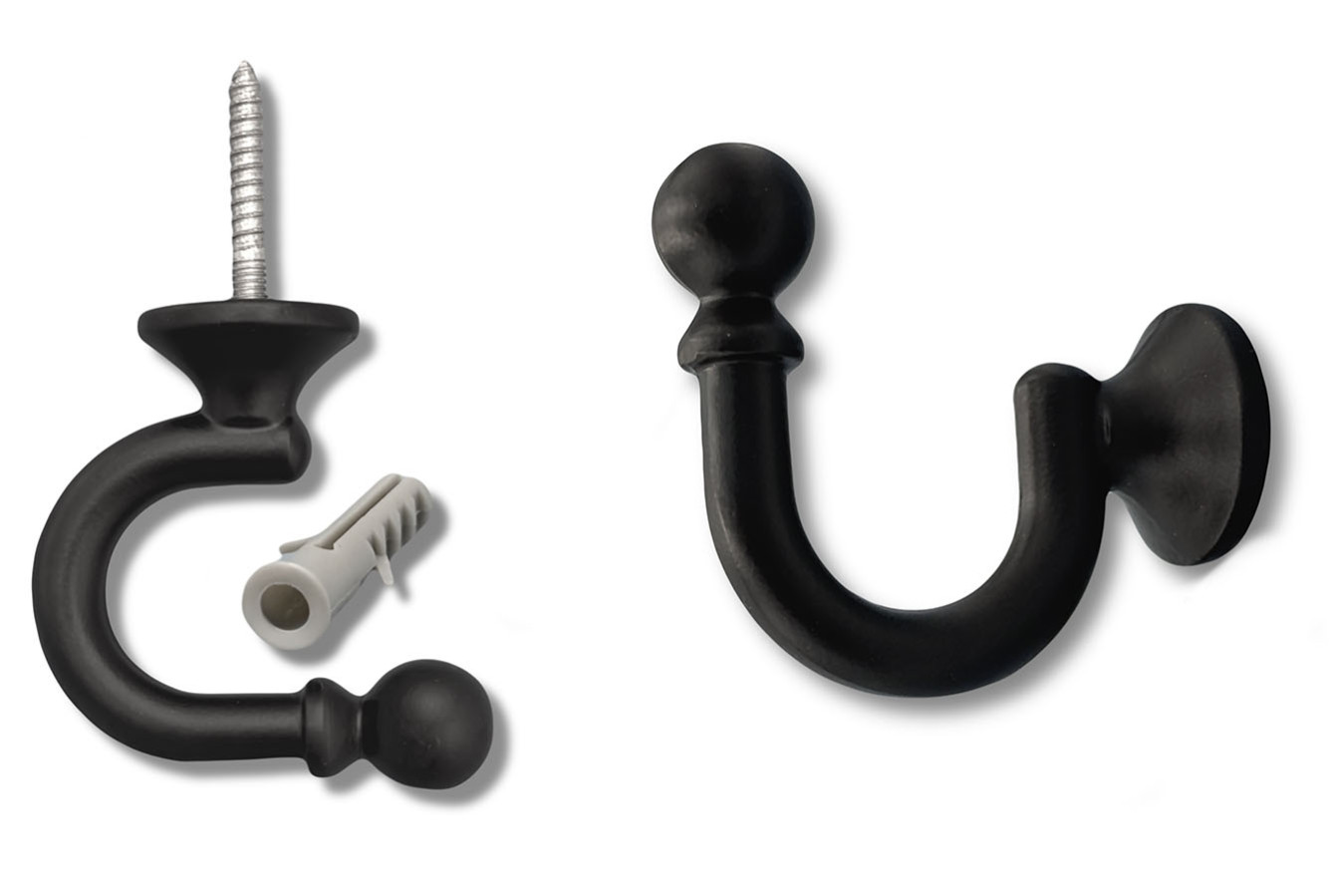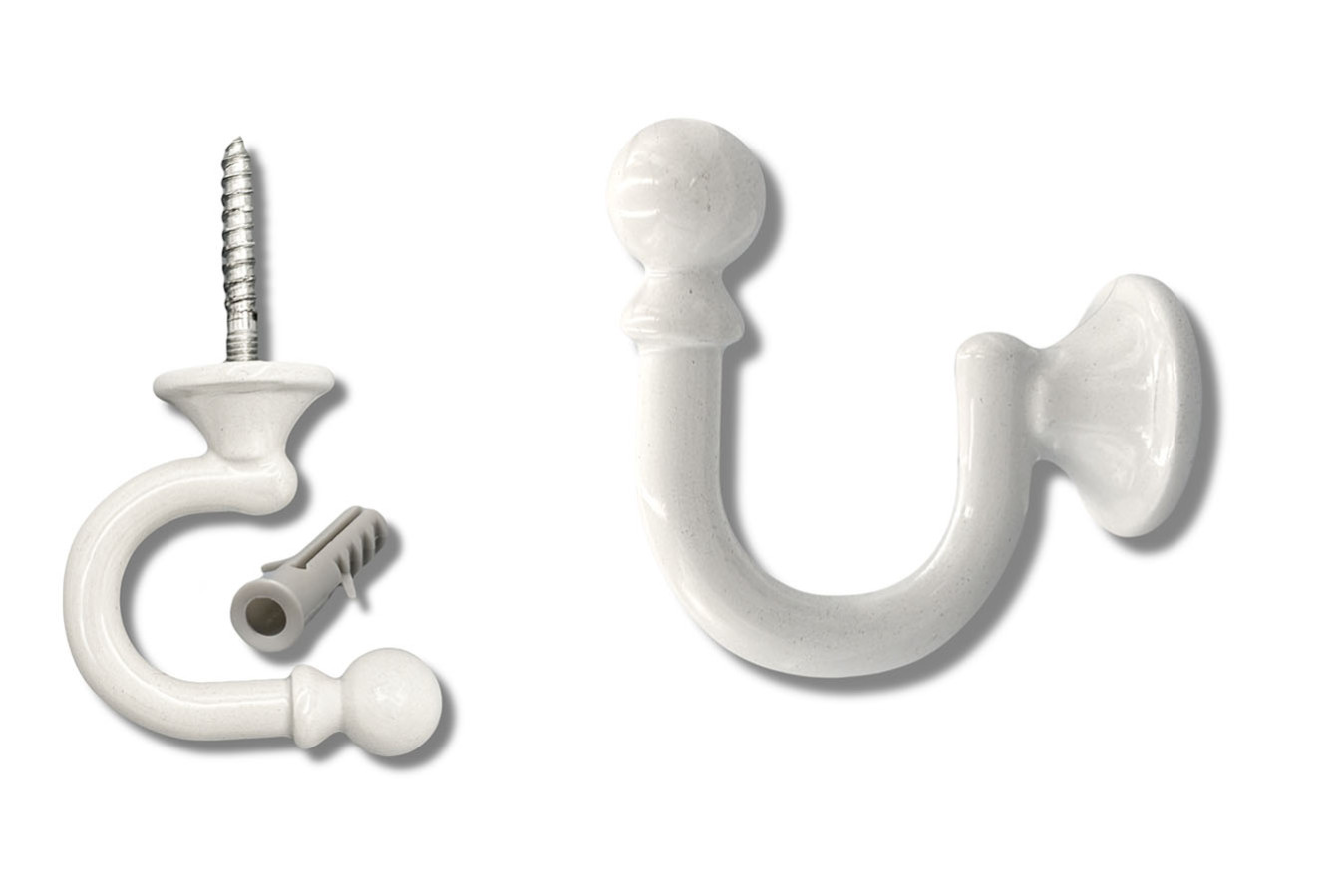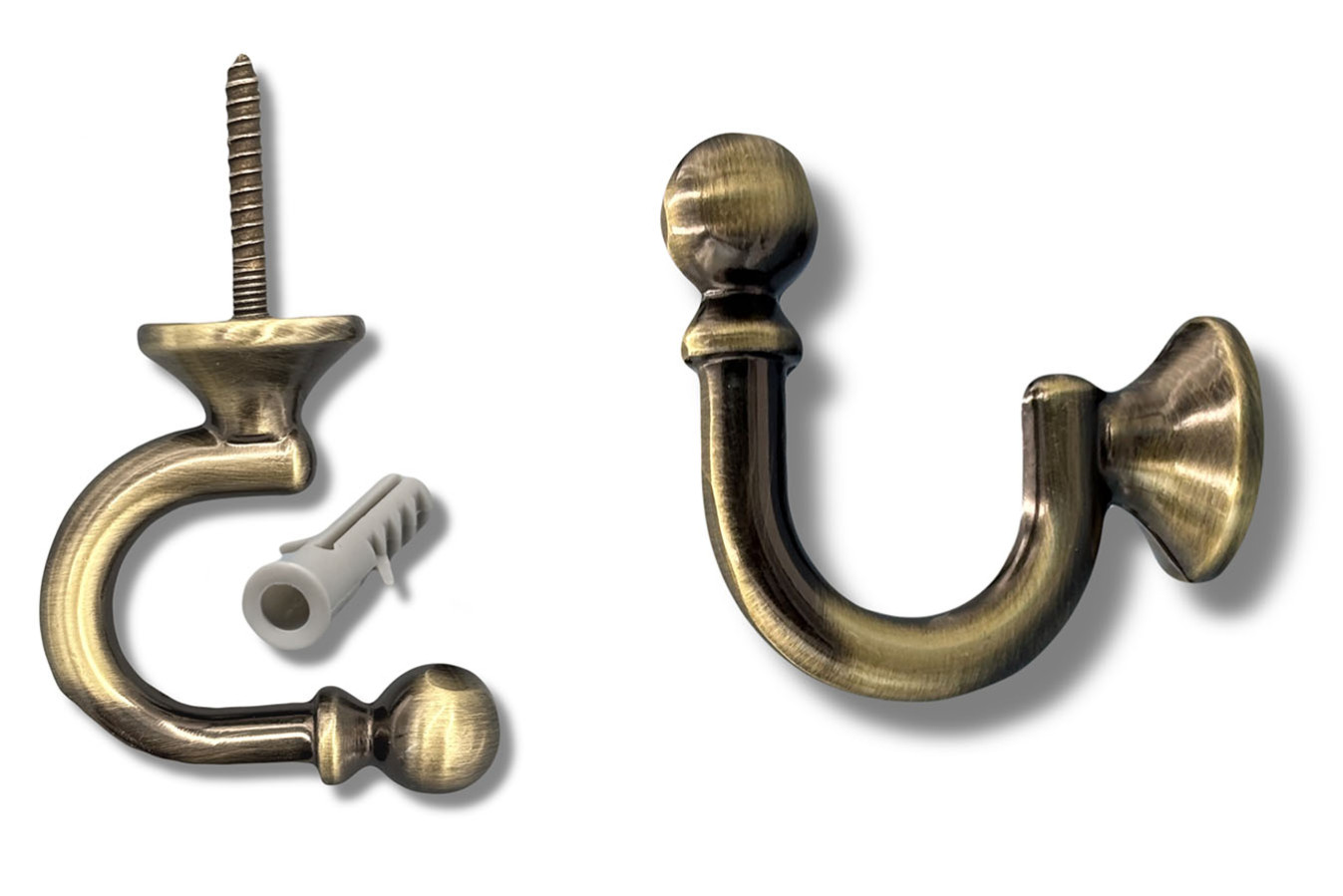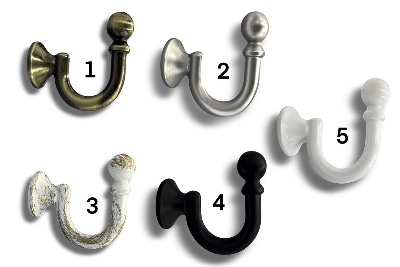 Гачок тримач для штор настінний в трьох варіантах. Аксесуар виконаний із металу з різним кольором покриття. Монтується на стіну, призначений для фіксації китиць і підхватів для штор. Переваги: висока якість і надійність, стильний дизайн.