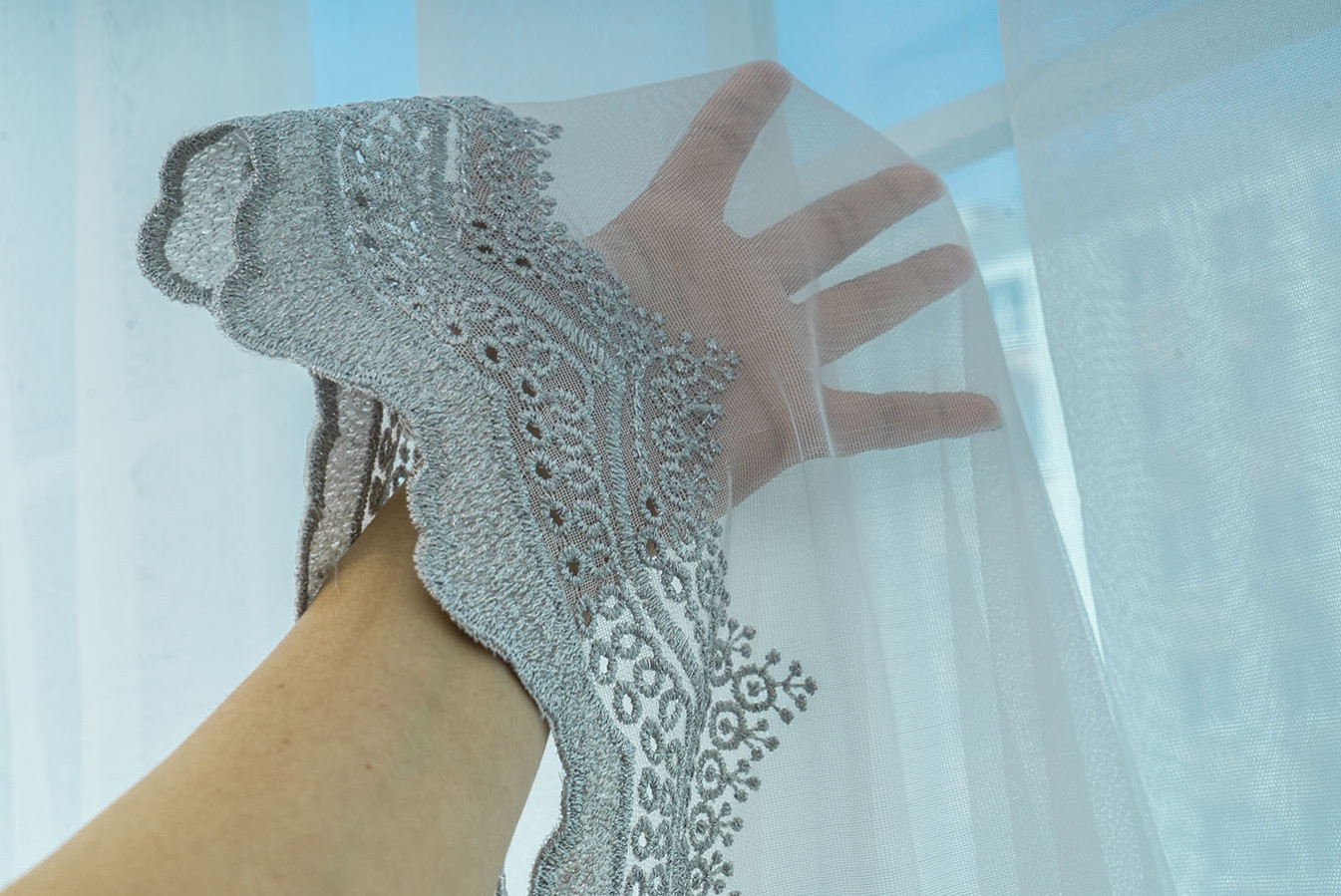 Тюль. Для визначення необхідної кількості метрів тюлю на вікно необхідно враховувати довжину карниза, щільність тюлю та густоту малюнка на тюлі. Наприклад, якщо тюль з великим малюнком, то на 1 метр карниза потрібно брати приблизно 2-2,5 м/пог матеріалу, щоб малюнок не загубився в складках і таким чином не змазався ефект від обраного тюлю. Якщо ж тюль тонкий і однотонний, його можна набирати побільше, наприклад, на 1 метр карнизу 2,5-3,5 м/пог матеріалу.
