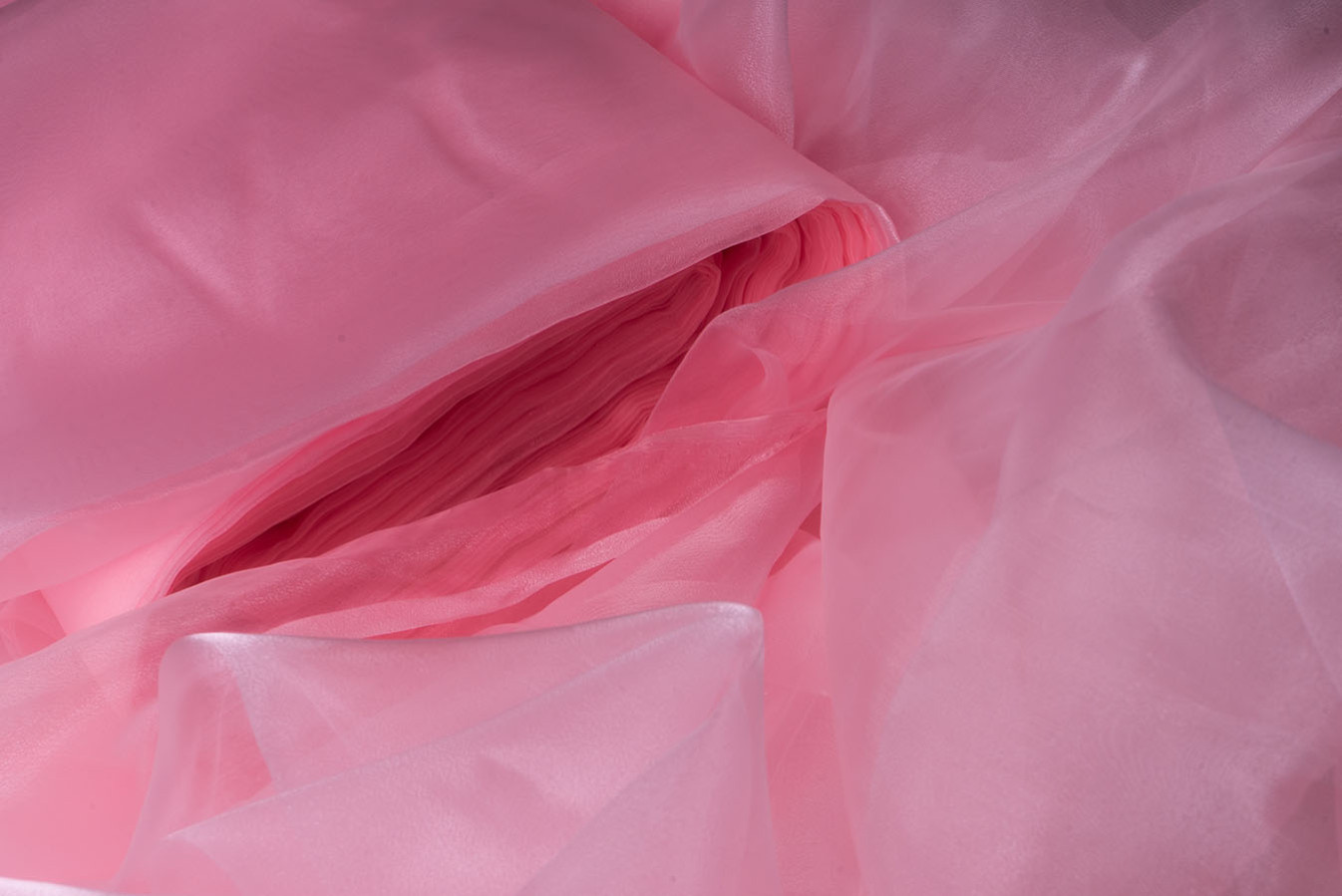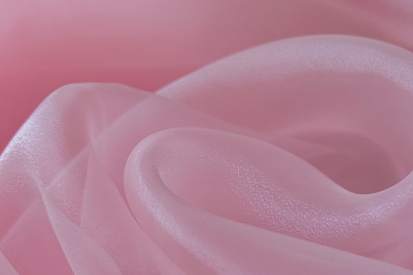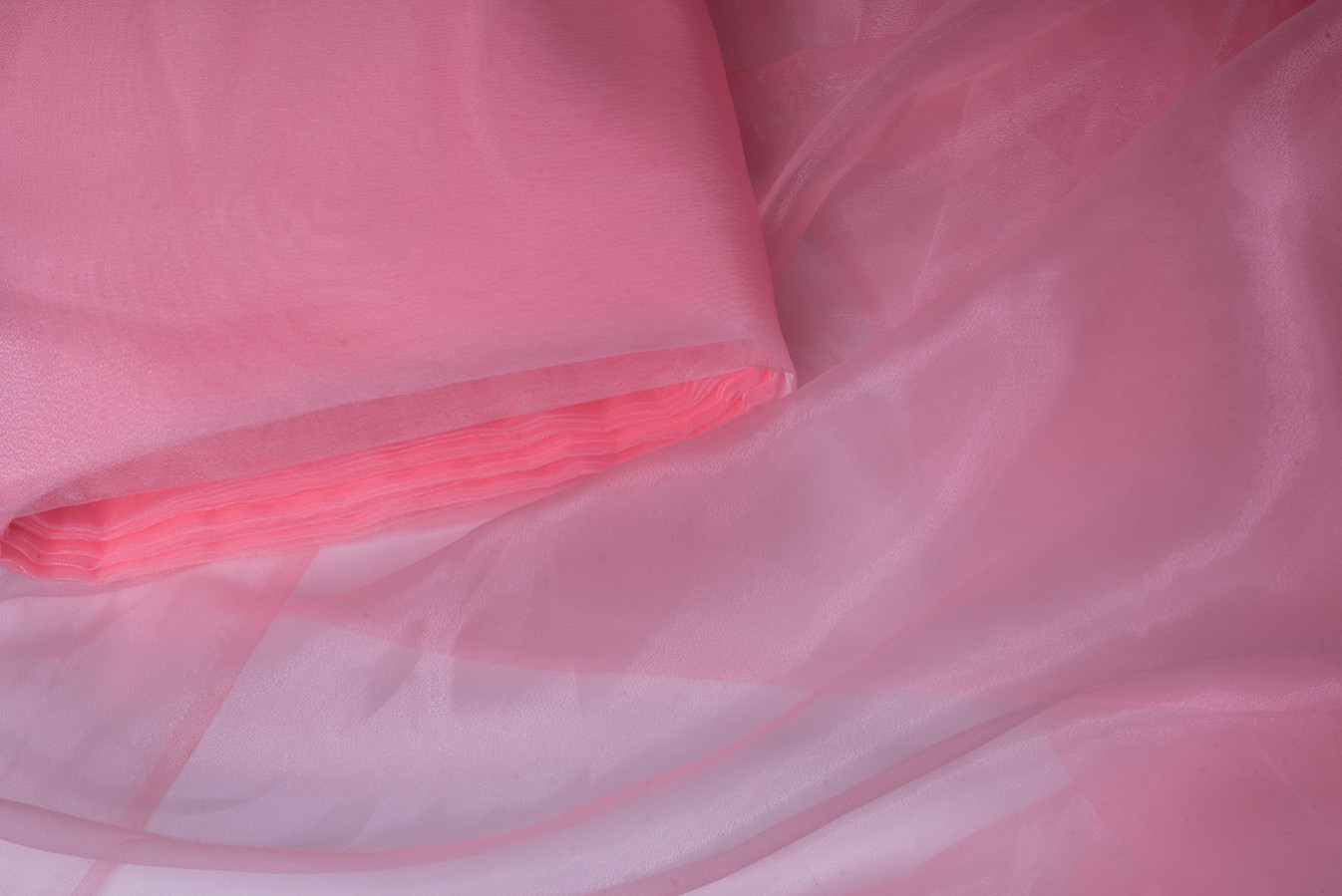 Рожевий тюль органза характеризується легкістю, максимальною прозорістю, а також, наявністю ніжного сяйва на поверхні. Іскристі переливи на поверхні тканини роблять її складки особливо привабливими і виразними. Жорсткість органзи сприяє створенню об'ємних і формостійких драпіровок, а шнур обтяжувач по низу тюля надасть воланам гарну округлу форму. На вікнах виглядає свіжо і невагомо, надає обстановці свіжу, життєрадісну атмосферу.