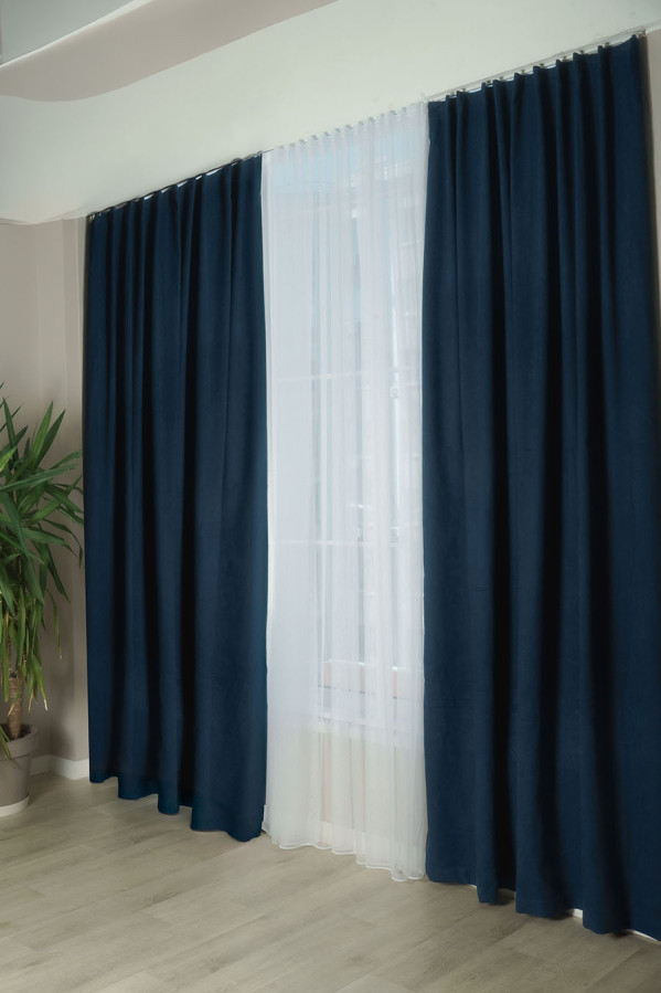 Турецькі штори мікровелюр темно-синього кольору — тканина з приємною на дотик, бархатистою поверхнею.