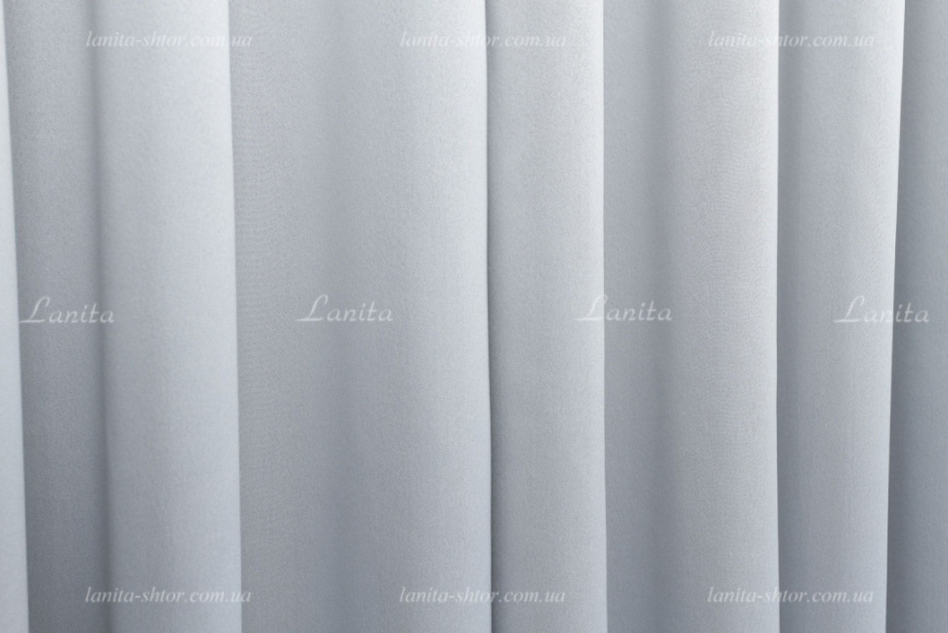 Полегшена модель блекаута для штор в прохолодному блідо-сірому відтінку. Такий колір штор надає інтер'єру атмосферу свіжості і деякої строгості. Тканина має шарувату структуру, в яку включений внутрішній шар плетіння чорних ниток, який грає роль світлопоглинаючого прошарку. Штори виконані двосторонніми - обидві сторони мають однаково гладку матову поверхню. А драпірування з такого матеріалу виходять глибокими і дуже виразними.