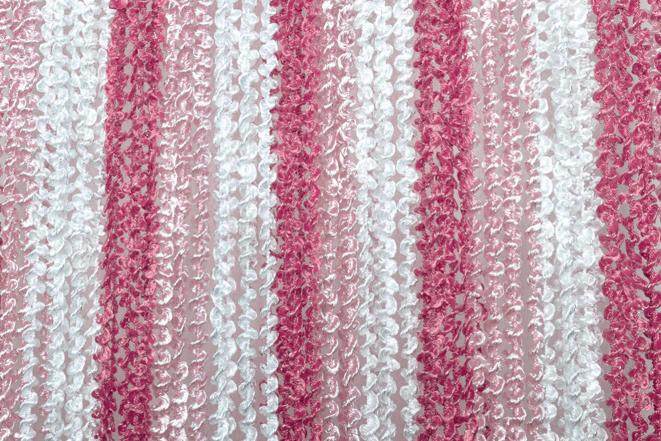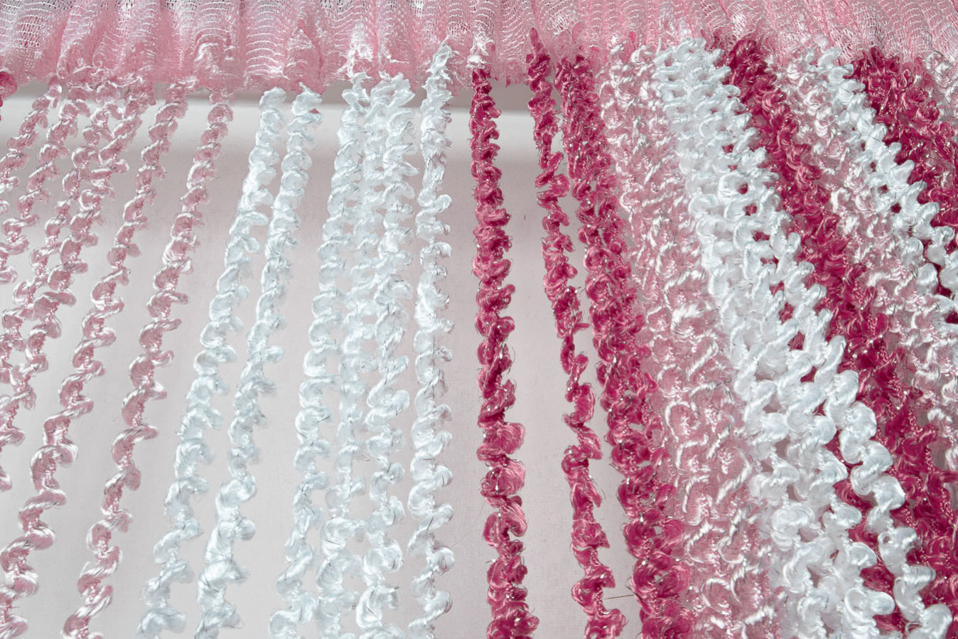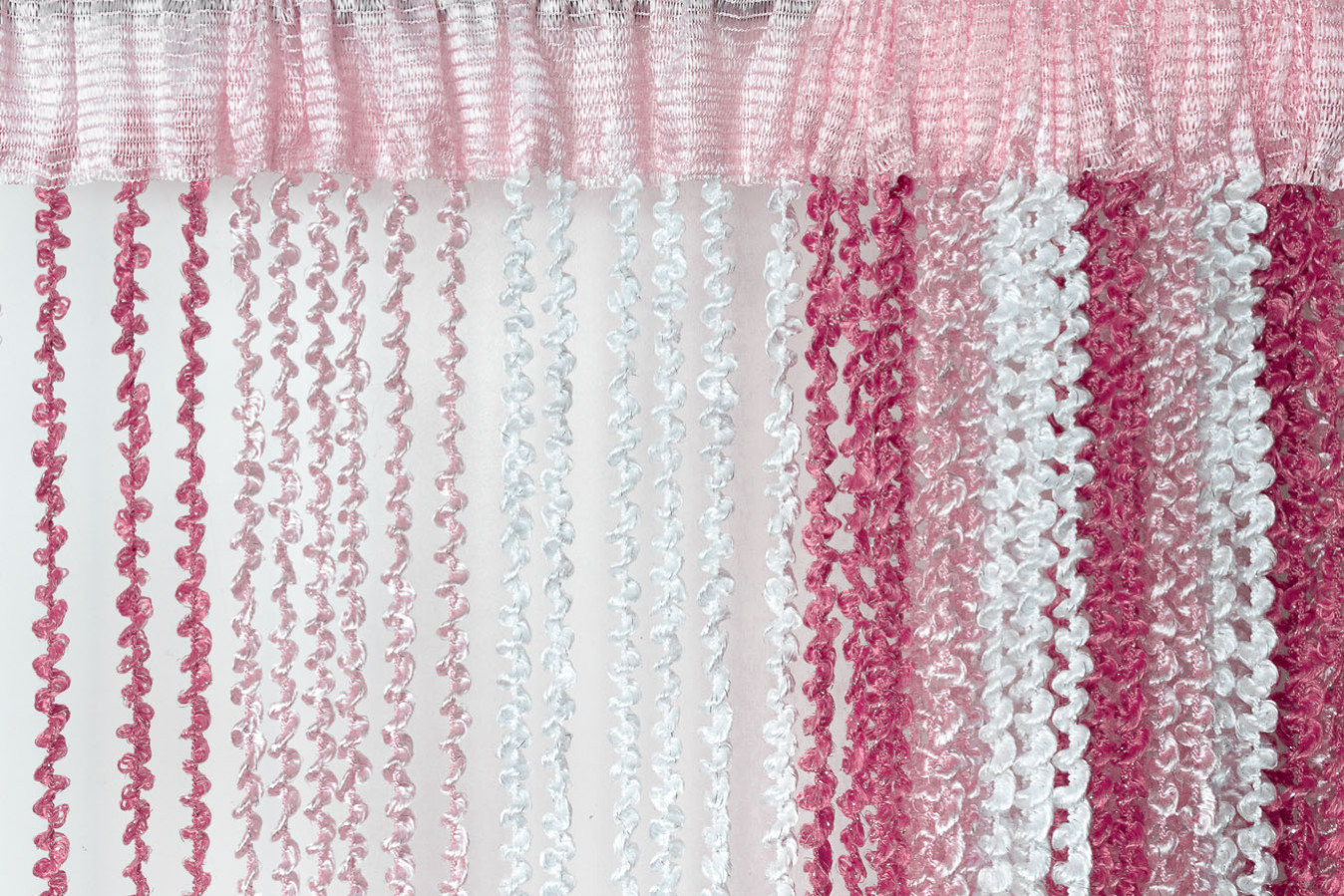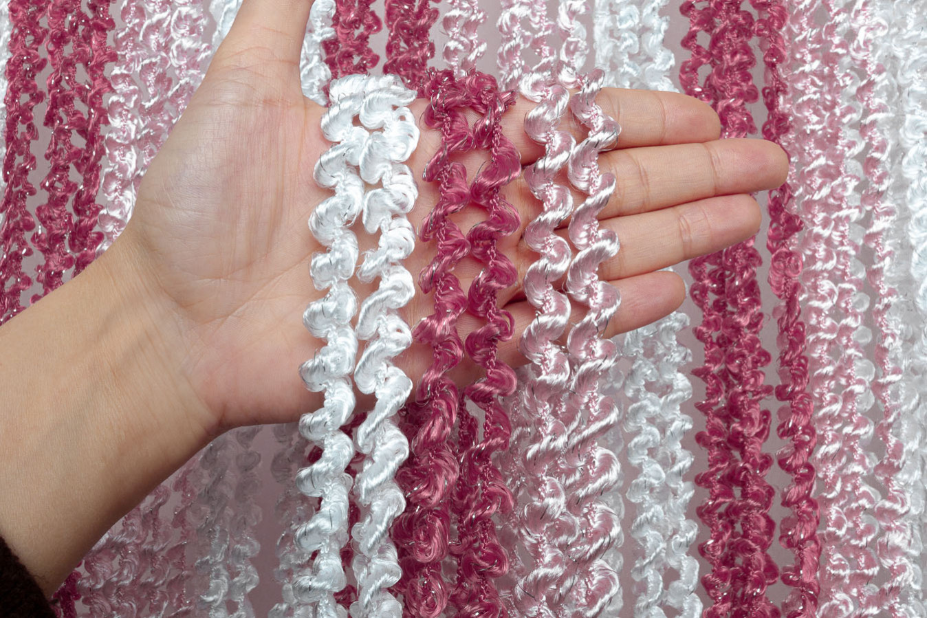 Штори-нитки спіраль — це декоративна штора з ниток, що прикрашена витонченим спіральним плетінням, що додає інтер'єру особливого шарму. Вона чудово пропускає світло, створюючи м'яке розсіювання, і водночас виконує декоративну функцію, зонуючи простір чи прикрашаючи вікно, дверний проріз або стіну. У фігурне плетіння ниток включений сріблястий люрекс, що надає кисеї ніжне мерехтіння. А об'ємна та пухнаста структура ниток робить штори схожими на фантастичну, легку хмару.