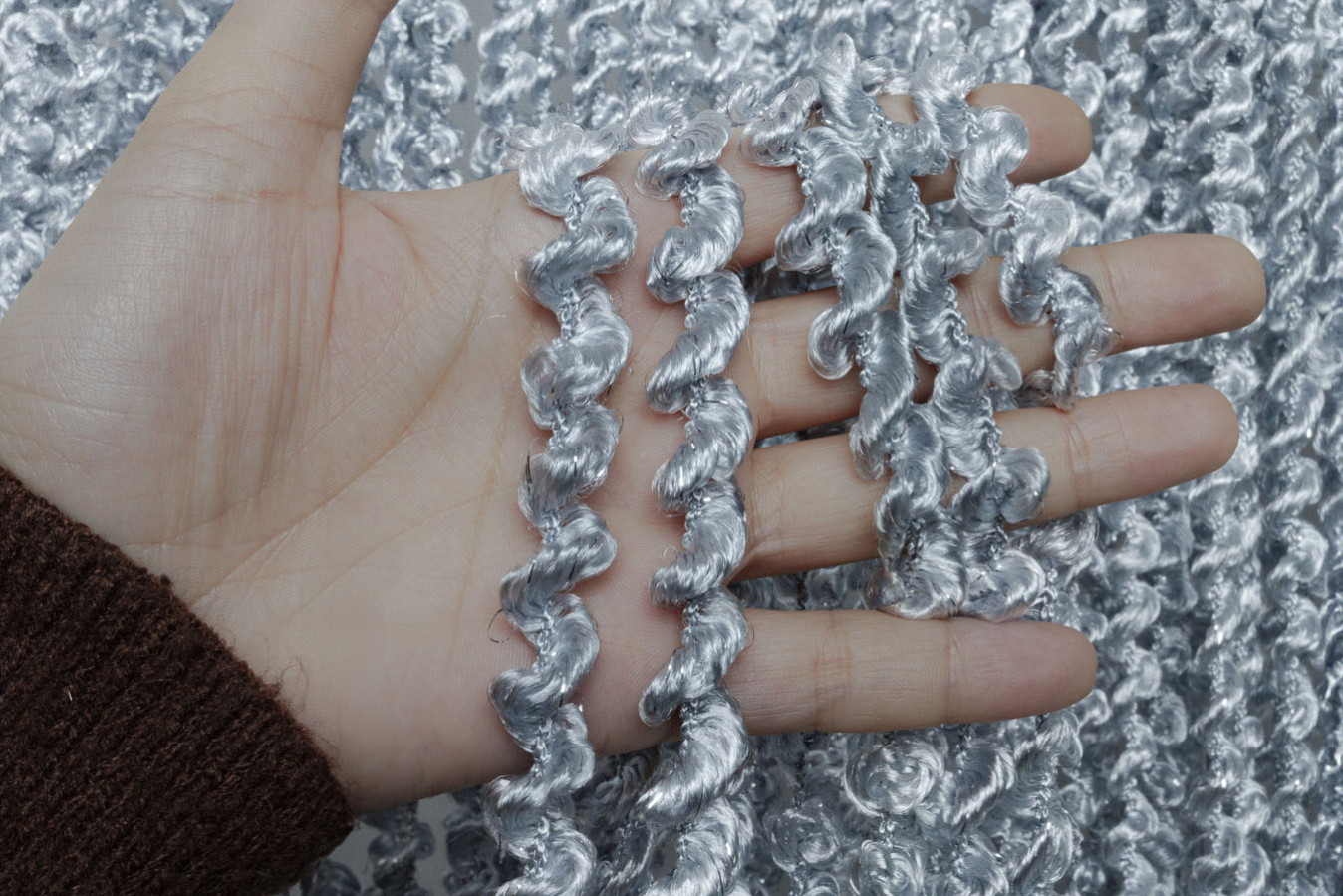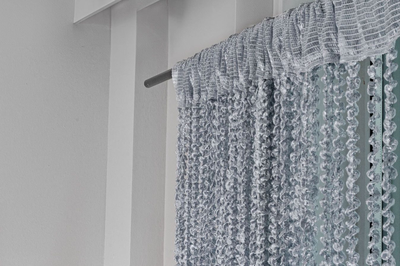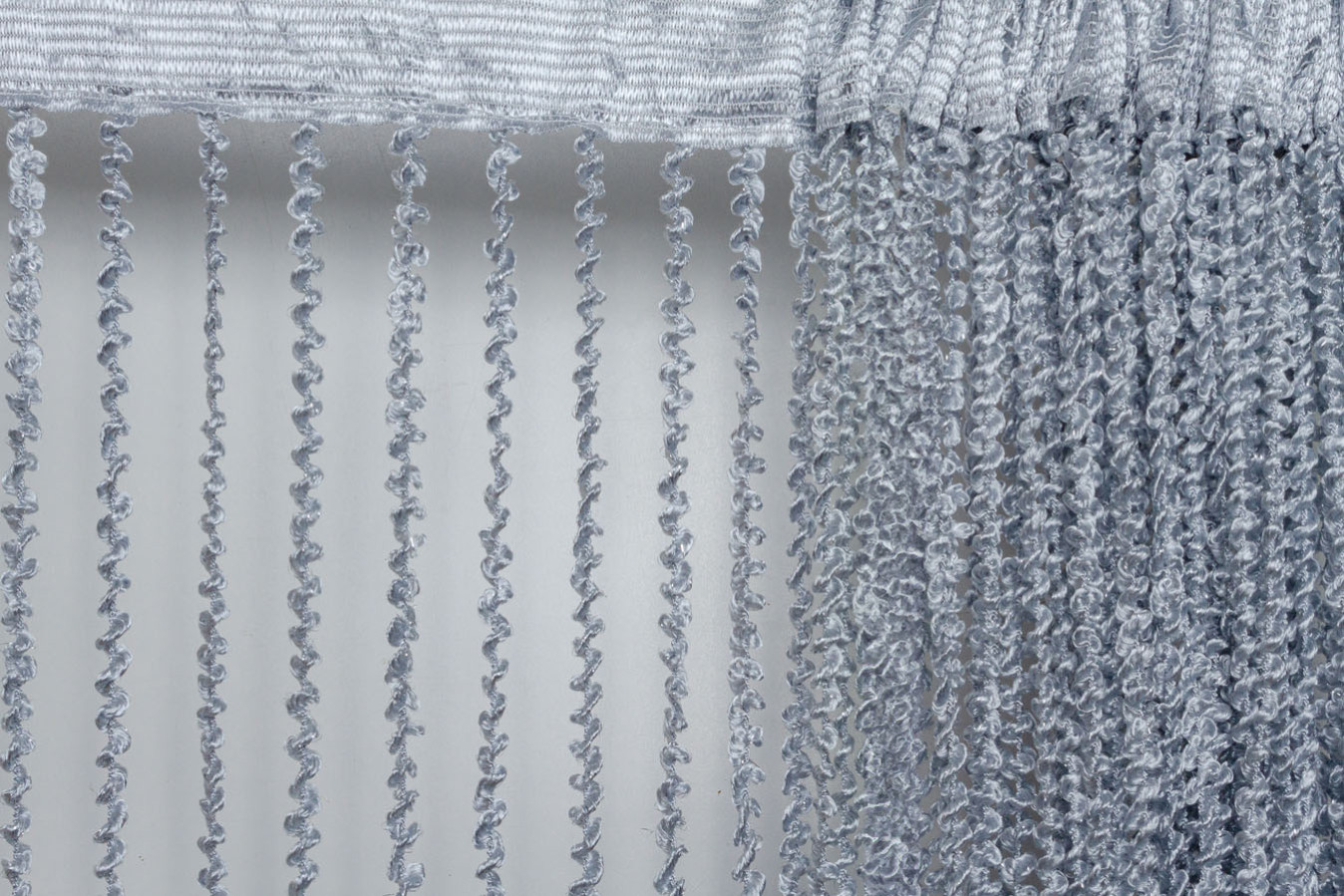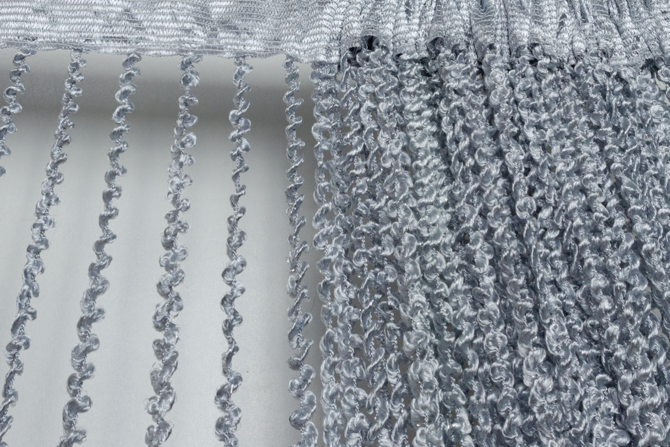 Штори-нитки спіраль — це декоративна штора з ниток, що прикрашена витонченим спіральним плетінням, що додає інтер'єру особливого шарму. Вона чудово пропускає світло, створюючи м'яке розсіювання, і водночас виконує декоративну функцію, зонуючи простір чи прикрашаючи вікно, дверний проріз або стіну. У фігурне плетіння ниток включений сріблястий люрекс, що надає кисеї ніжне мерехтіння. А об'ємна та пухнаста структура ниток робить штори схожими на фантастичну, легку хмару.