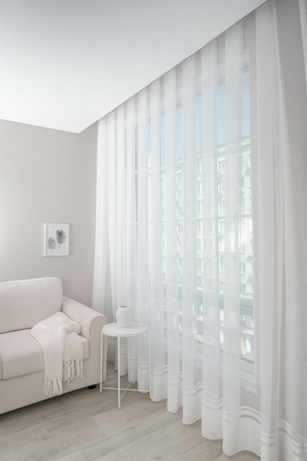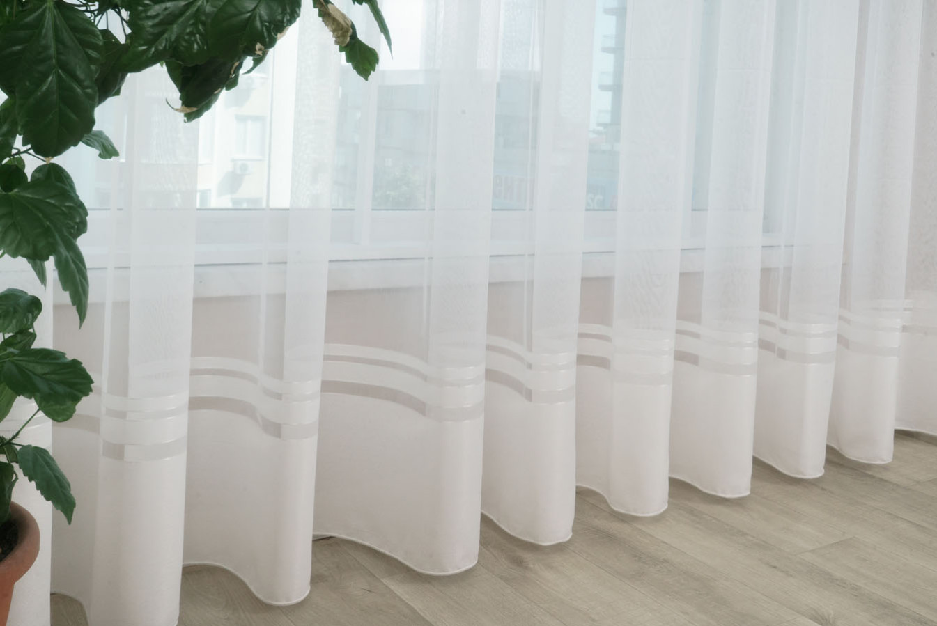 Такий тюль гармонійно поєднується як із класичними шторами, так і з сучасними мінімалістичними інтер’єрами. Він пропускає м’яке природне світло, одночасно даруючи відчуття затишку та приватності. Ідеальний вибір для вітальні, спальні чи кухні, де важливі легкість, елегантність і стиль.