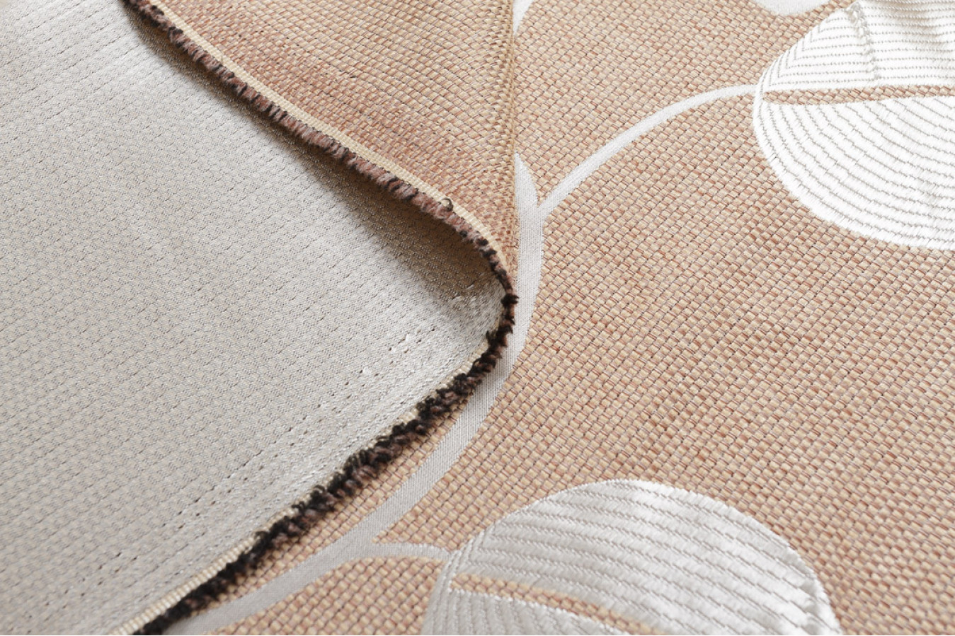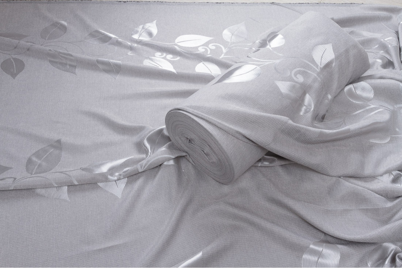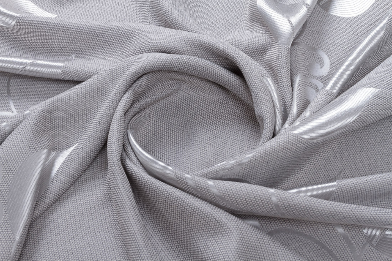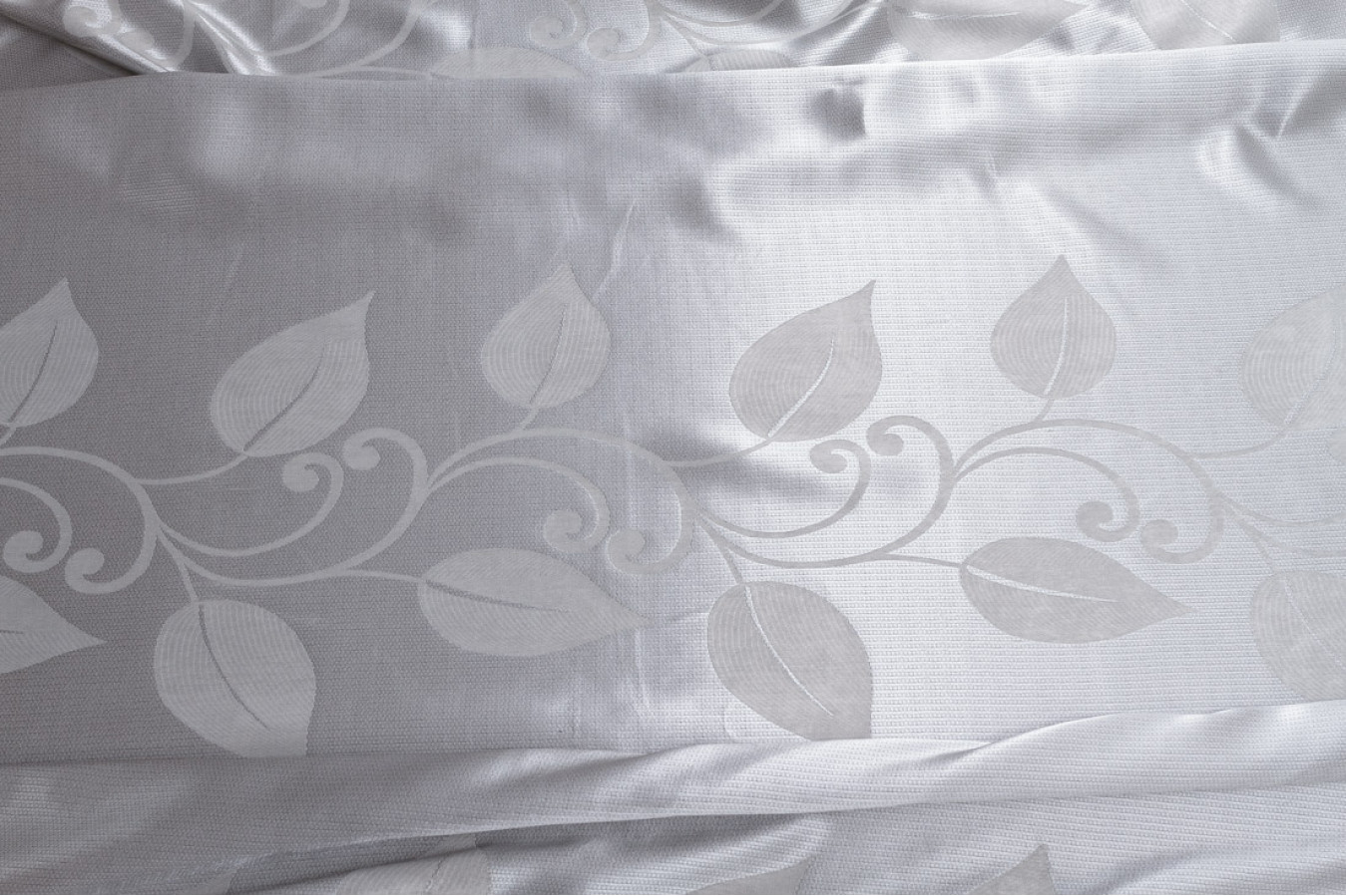Штори блекаут двосторонні прикрашені крупним, горизонтально розташованим листяним орнаментом. Одна зі сторін блекауту має фактурну матову поверхню з виразним полотняним переплетенням волокон на кшталт рогожки. Візерунок виконаний завдяки вплетенню блискучих шовковистих ниток в основу. Інша сторона тканини має гладкий, ніжно сяючий фон і матовий візерунок. Штори виглядають дуже ефектно і виразно, до того ж завдяки своїй щільності і шаруватій структурі добре захищають від сонця.