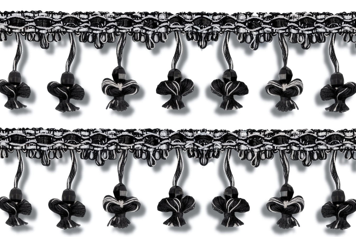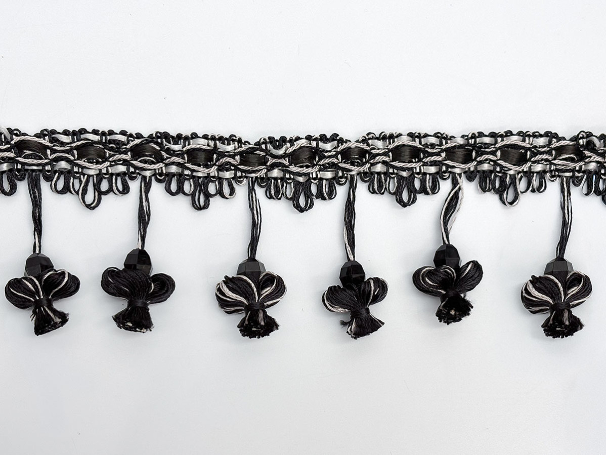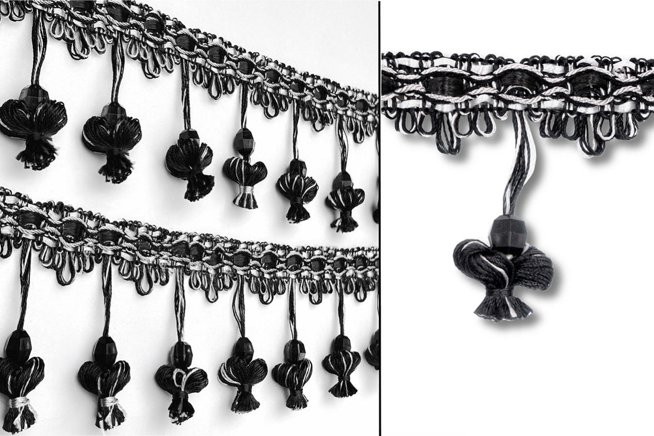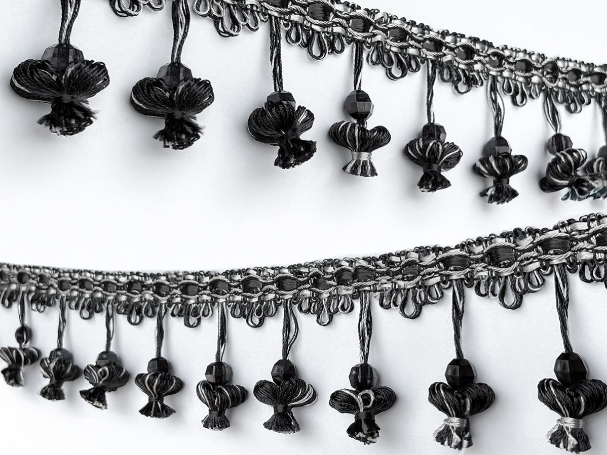 Бахрома з намистинами для прикраси штор і тюлю, колір чорний.