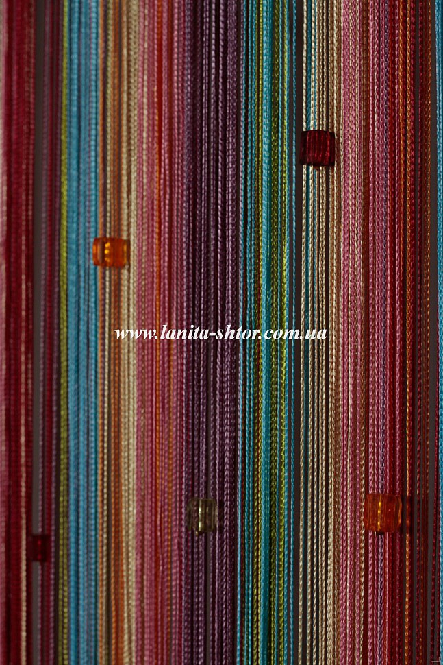 Также ниточные шторы могут быть декорированы бисером, пластмассовыми круглыми или квадратными бусинами, перьями, пайетками, помпонами, стеклярусом разными по размеру и оттенку.