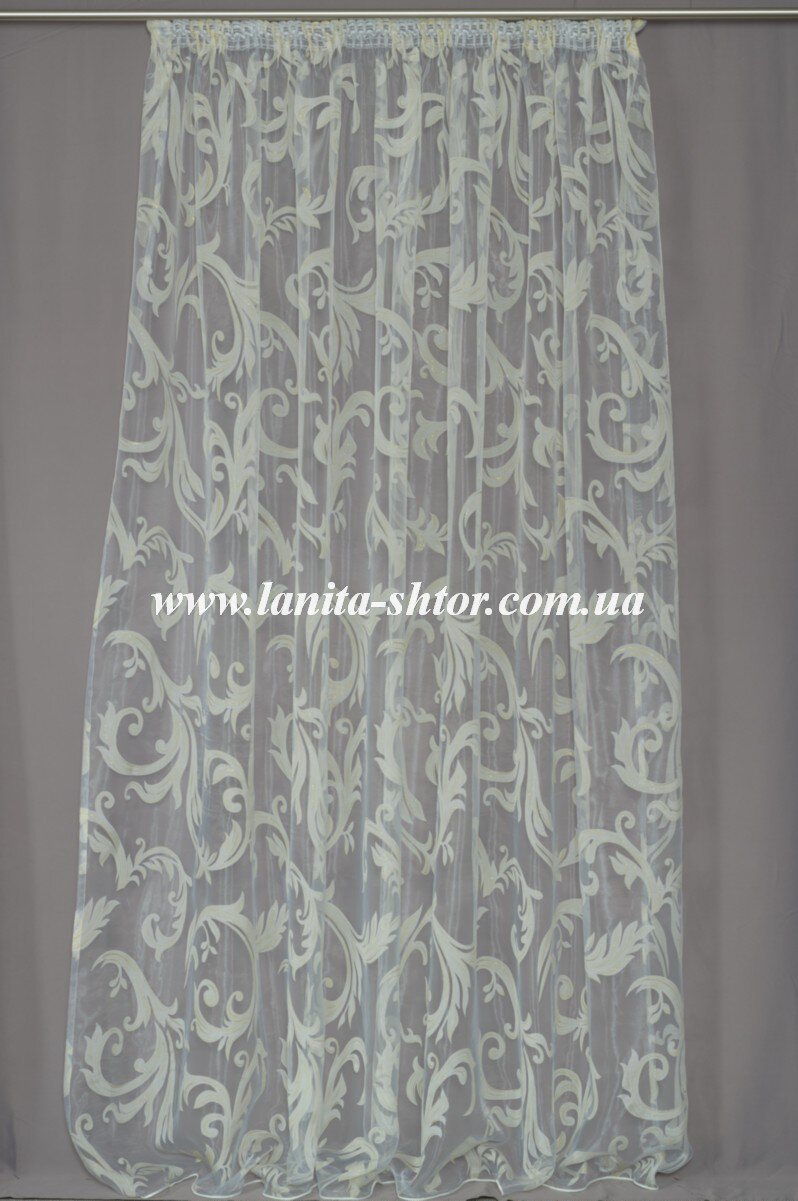 Тюль из прозрачной органзы, с нанесенным в технике деворе рисунком наподобие вензелей. Узор сочетает белый и бежево-золотистый цвета, декорирован золотым напылением, благодаря которому ткань красиво сверкает при попадании света. Гардина с вензелями подчеркнет особый вкус ее обладателя, и внесет в Ваше окружение особую красоту и утонченность. Красиво драпируется, ложась в объемные складки.