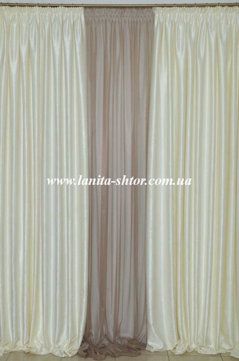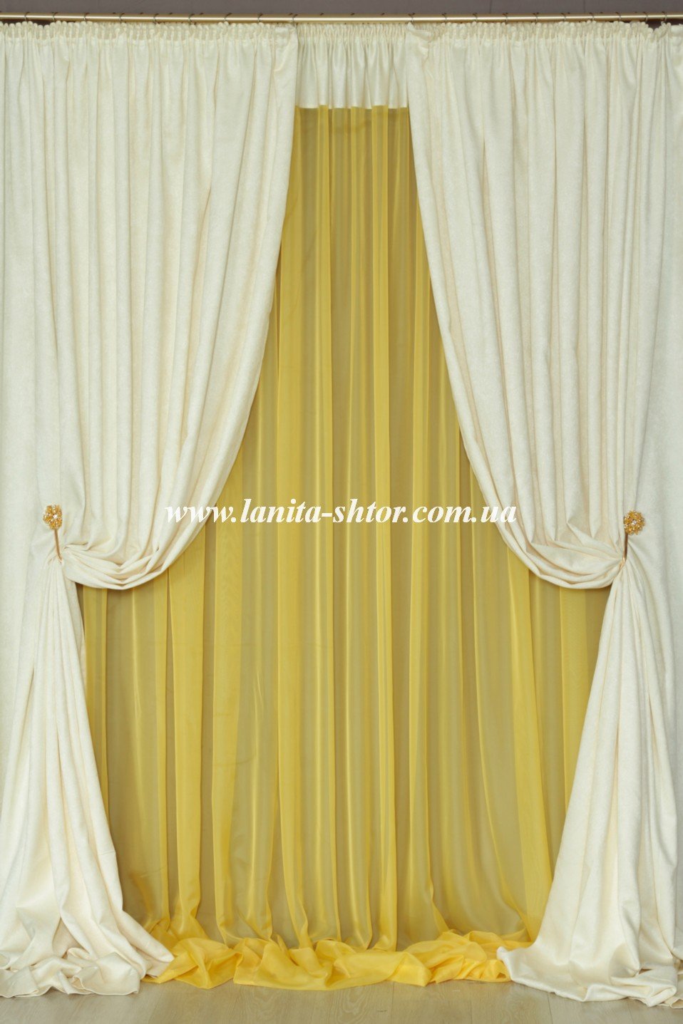 Молочная штора из велюра радует глаз мягким, ласковым сиянием. Приятная на ощупь, бархатистая поверхность лицевой стороны демонстрирует деликатный отлив и нежную структуру. Податливость и эластичность этого материала позволяют создавать красивые, выразительные драпировки. А теплый и комфортный для глаз цвет, придает ощущение свежести и чистоты.