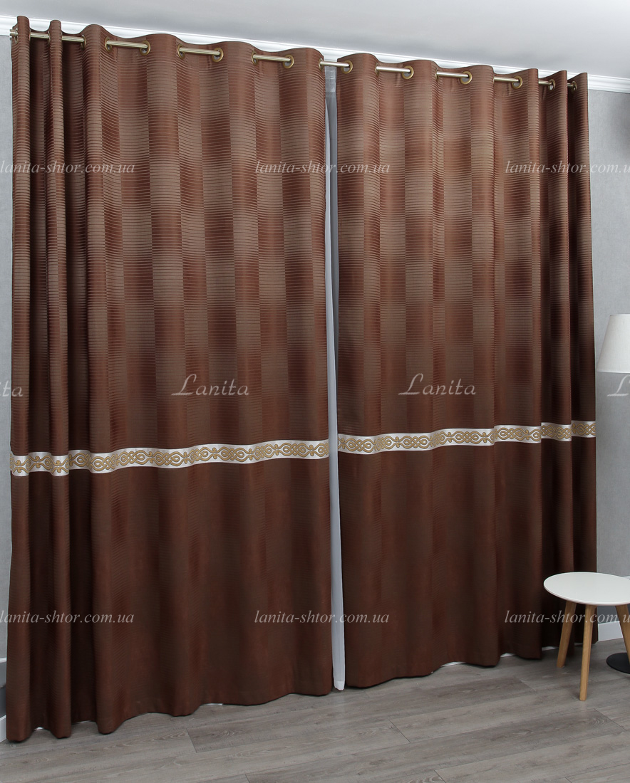 Двухсторонний портьерный материал совмещает в своей расцветке насыщенный каштановый и светло-коричневый тона. Эта плотная ткань имеет текстуру перемежающихся, динамично меняющих ширину полос, создающих общий "шахматный" узор. Демонстрирует смелую задумку дизайнеров — воплощение в интерьерной ткани модных арт-направлений сюрреализма и кубизма. Это лучшее решение для создания выразительных акцентов в модных и стильных интерьерах.