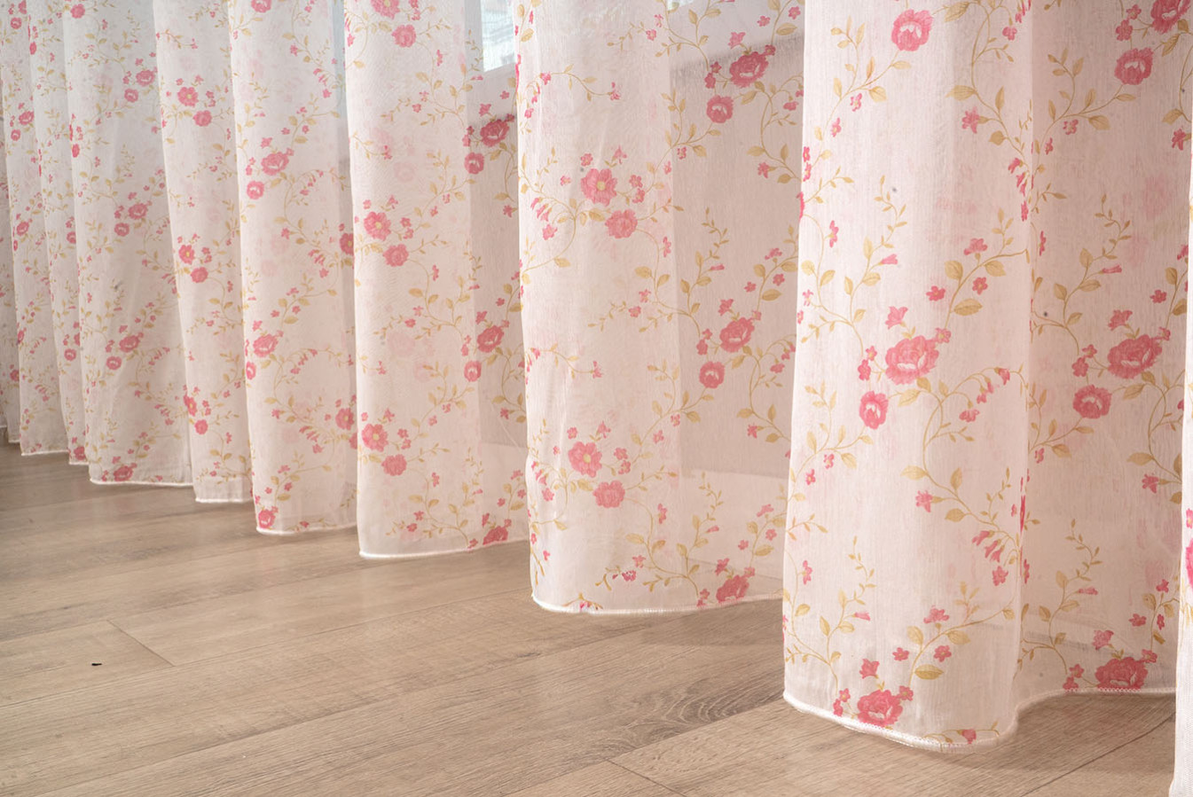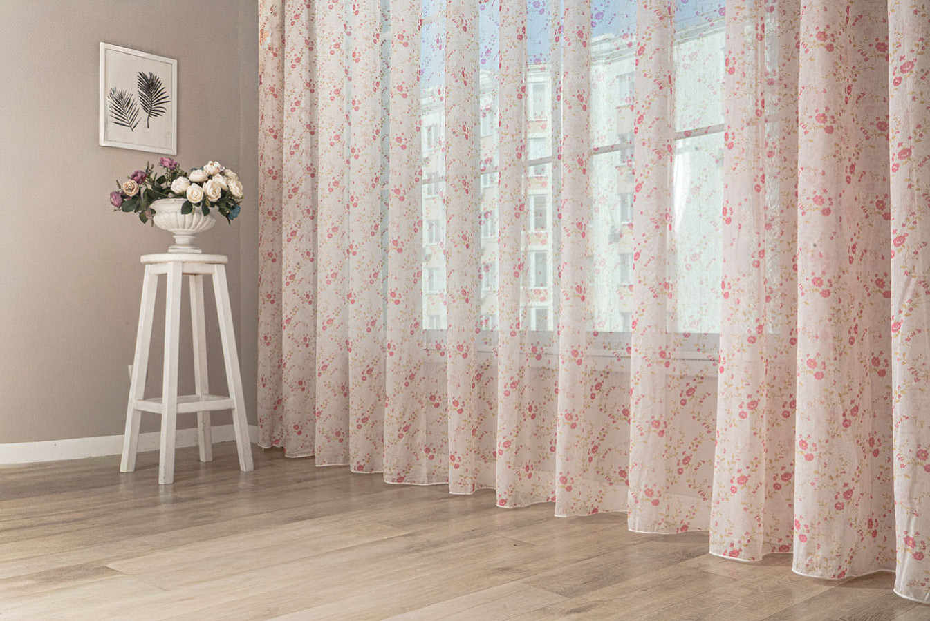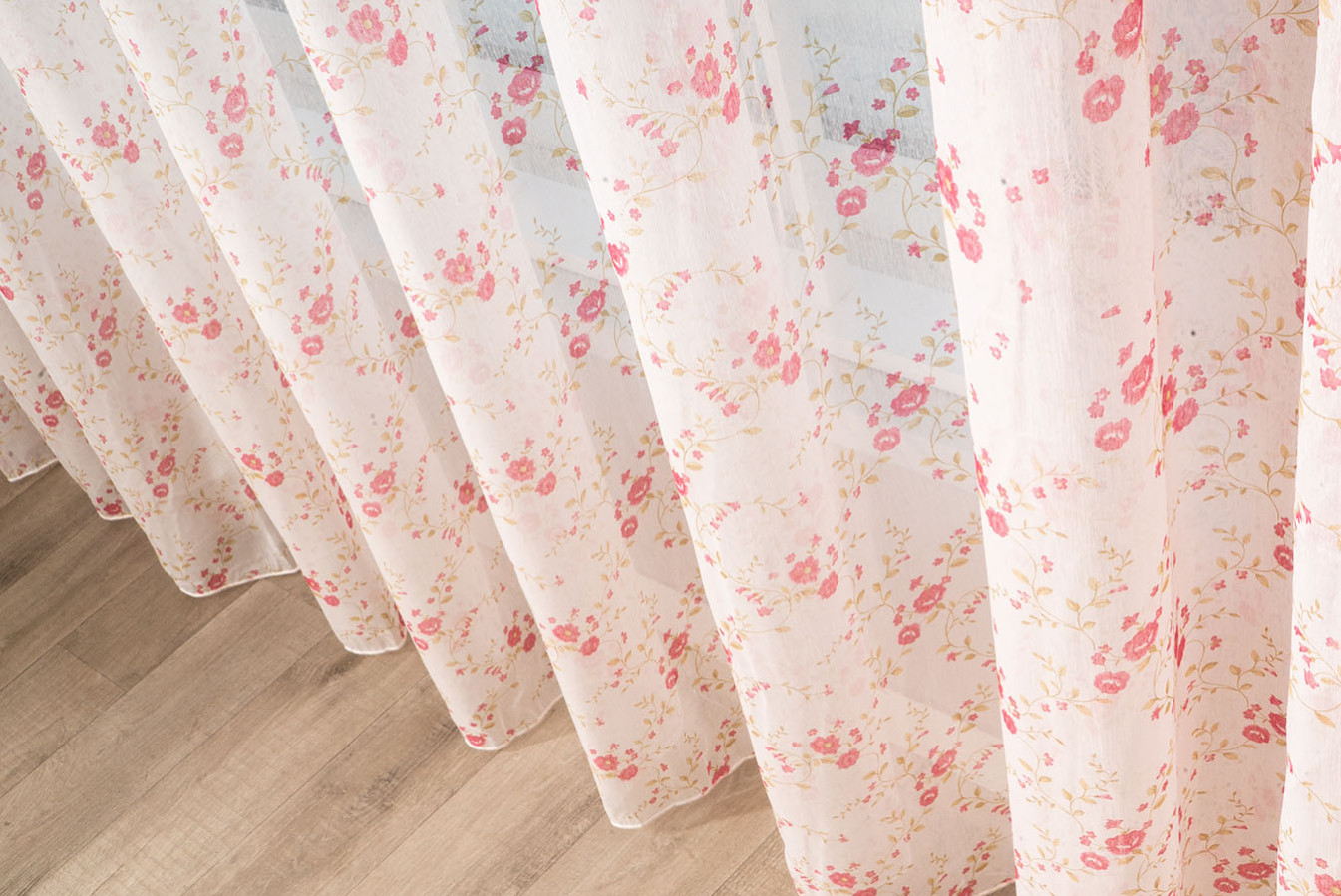 Легкий и воздушный тюль на основе батиста с ритмичным цветочным рисунком. Ткань характеризуется матовой поверхностью, полупрозрачностью и полотняным переплетением нитей. Выразительность фактуры обусловлена включением утолщенных волокон в структуру плетения ткани. Узор, выполненный способом текстильного принтования, смотрится очень нежно и романтично. Такая гардина будет уместна практически в любой комнате — спальне, кухне, гостиной или детской, и станет достойным украшением ваших окон.