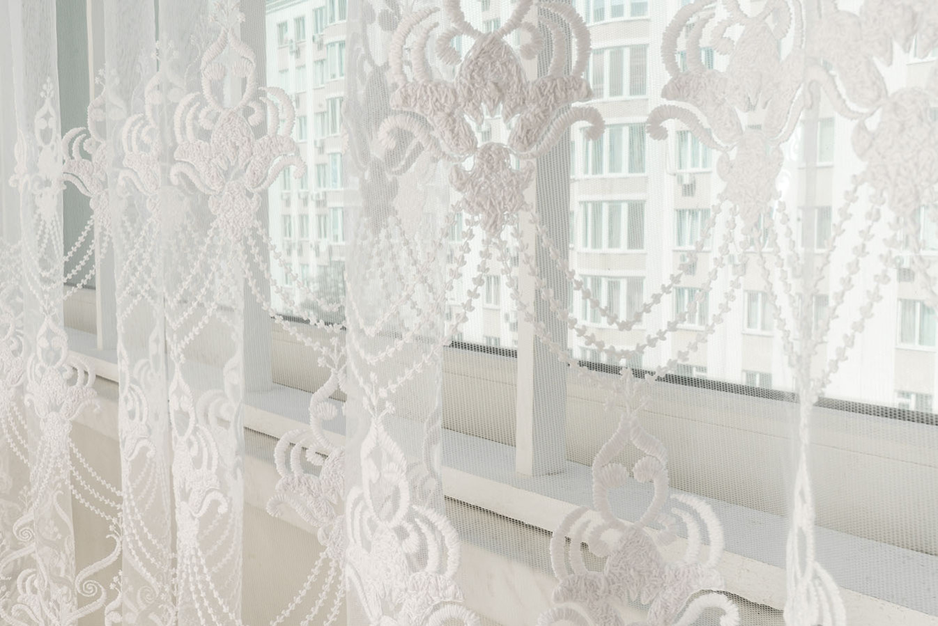 Тюль. Для определения необходимого количества метров тюля на окно необходимо учитывать длину карниза, плотность тюля и густоту рисунка на тюли. К примеру, если тюль с большим крупным рисунком, то на 1 метр карниза нужно брать, примерно, 2-2,5 м/пог материала, чтобы рисунок не потерялся в складках и таким образом не смазался эффект от выбранного тюля. Если же тюль тонкая и однотонная, то ее можно набирать побольше, к примеру, на 1 метр карниза 2,5-3,5 м/пог материала.