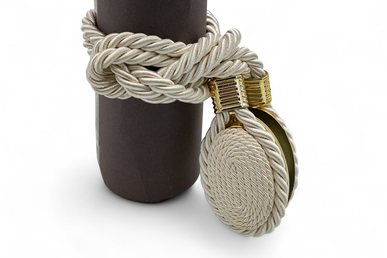 - Подхват: текстильные шнуры с магнитной клипсой.