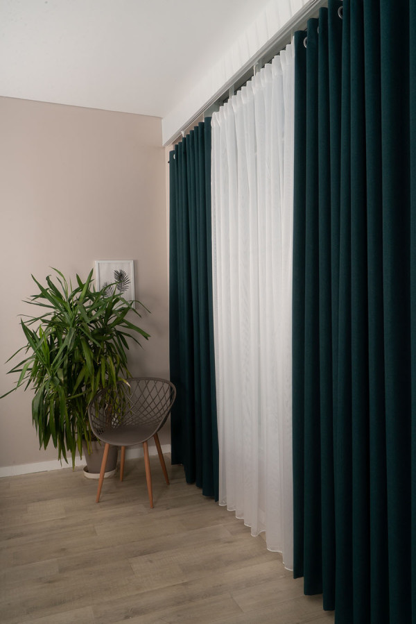 Шторы блэкаут двухсторонний Wolly в темно-бирюзовом цвете со 100% затемнением – это стильный и практичный выбор для вашего окна. Эти турецкие шторы изготовлены из высококачественного материала, имеющего внутренний слой из специального плотного полиэстера, блокирующего проникновение света и тепла. Ткань имеет двухсторонний дизайн с одинаковыми меланжевыми поверхностями под мешковину с обеих сторон. Шторы блэкаут Wolly – это лучшее сочетание шикарного вида и светозащитных качеств!