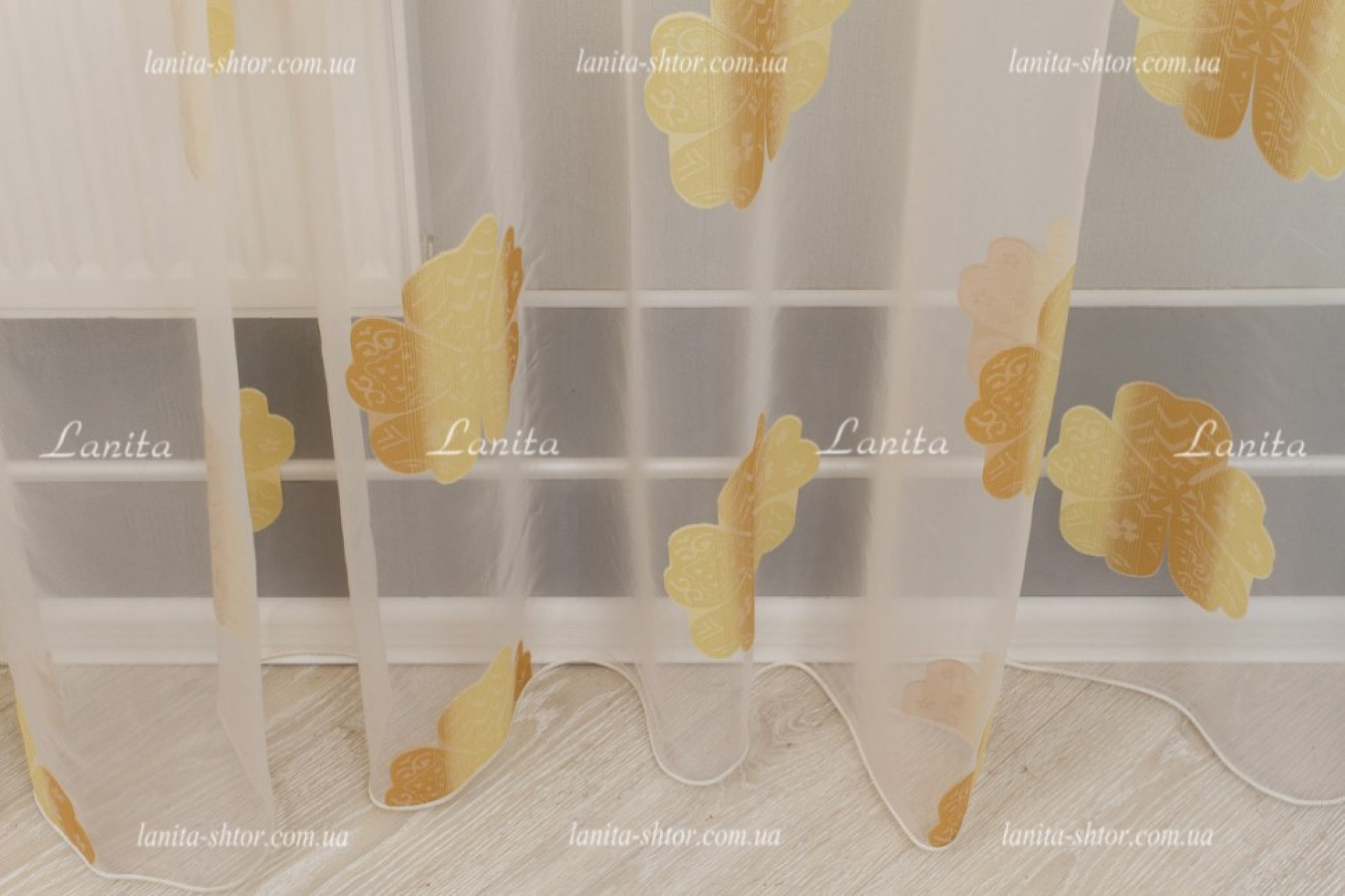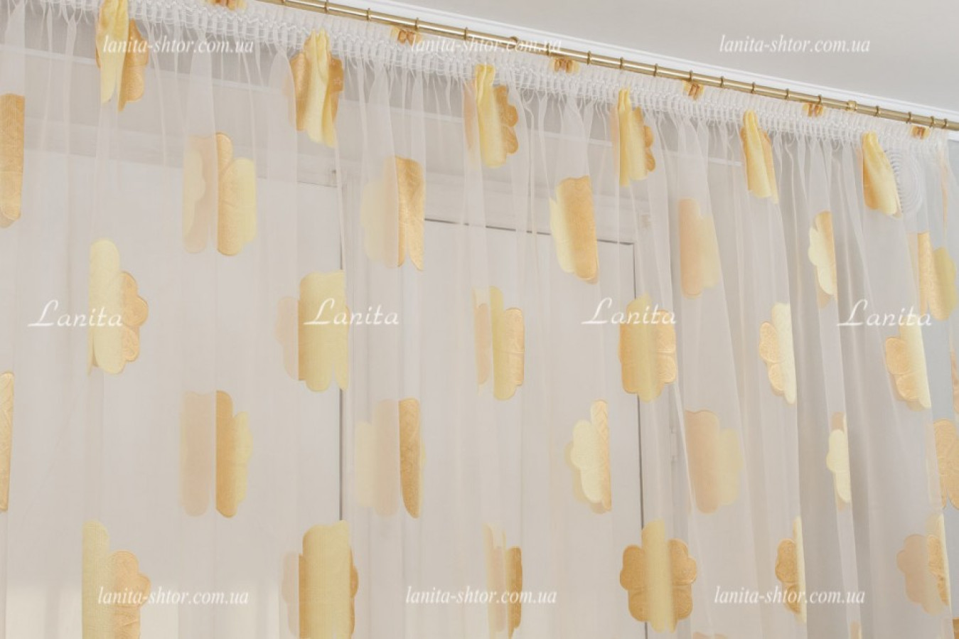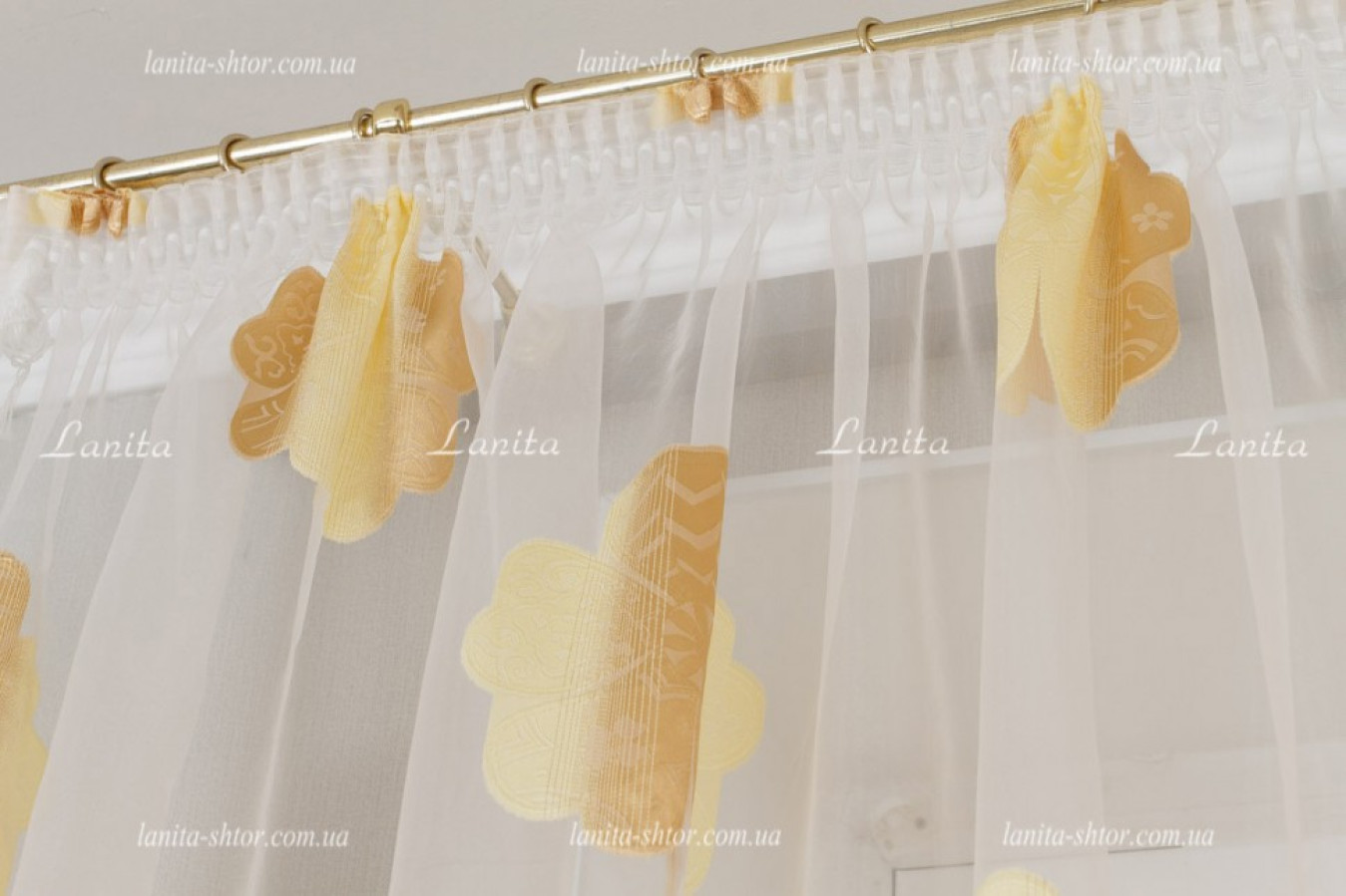 Легкая и воздушная гардина с крупными цветками в золотисто-карамельной расцветке. Тюль создан на основе органзы — легкой, прозрачной ткани с нежным восковым отливом на поверхности. Благодаря своей жесткости, тюль органза образует объемные и формоустойчивые фалды при драпировках. А ее выразительный декор создан путем фактурного вплетения шелковистых волокон в основу, в результате чего получились цветы с рельефной и мягко сияющей поверхностью.