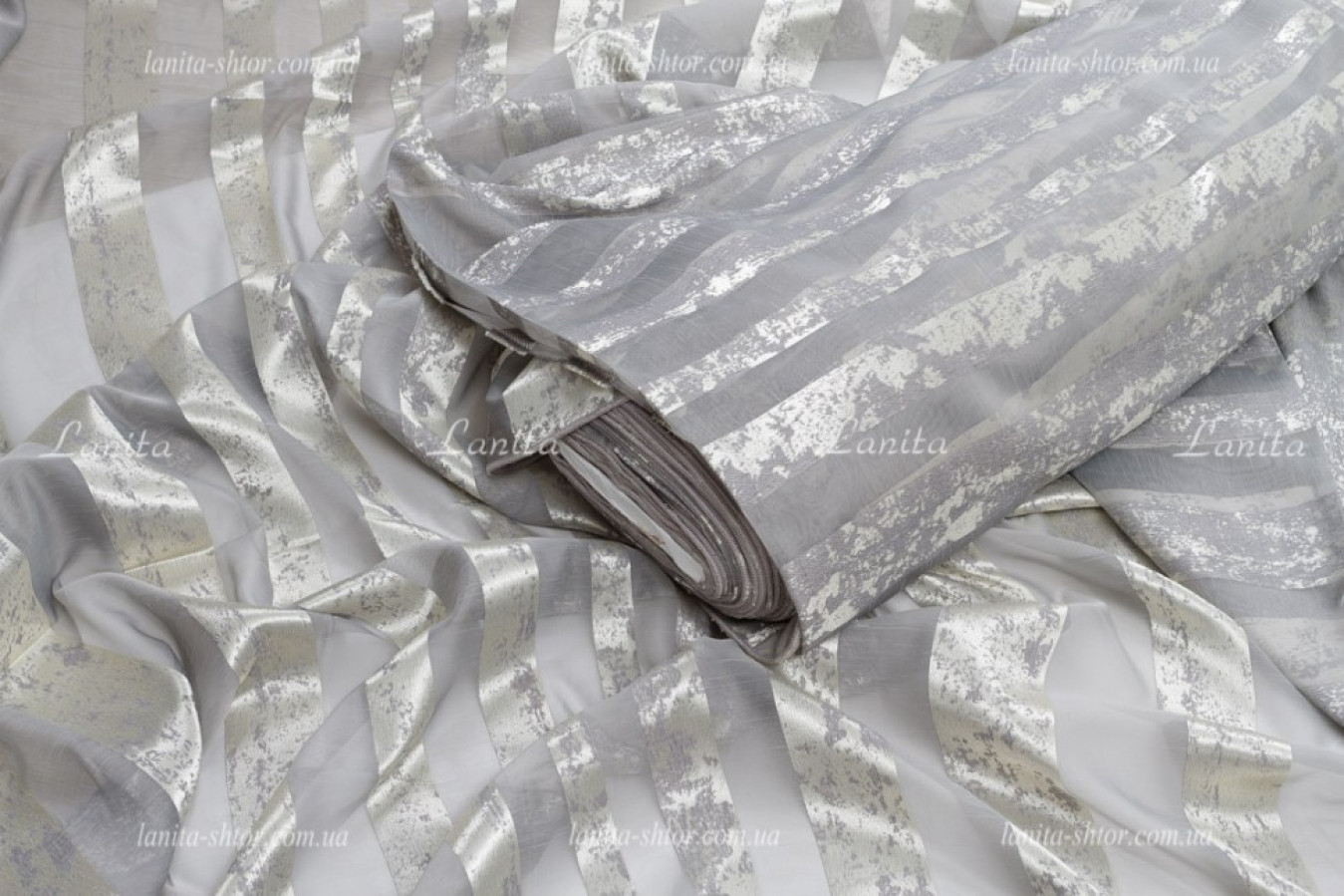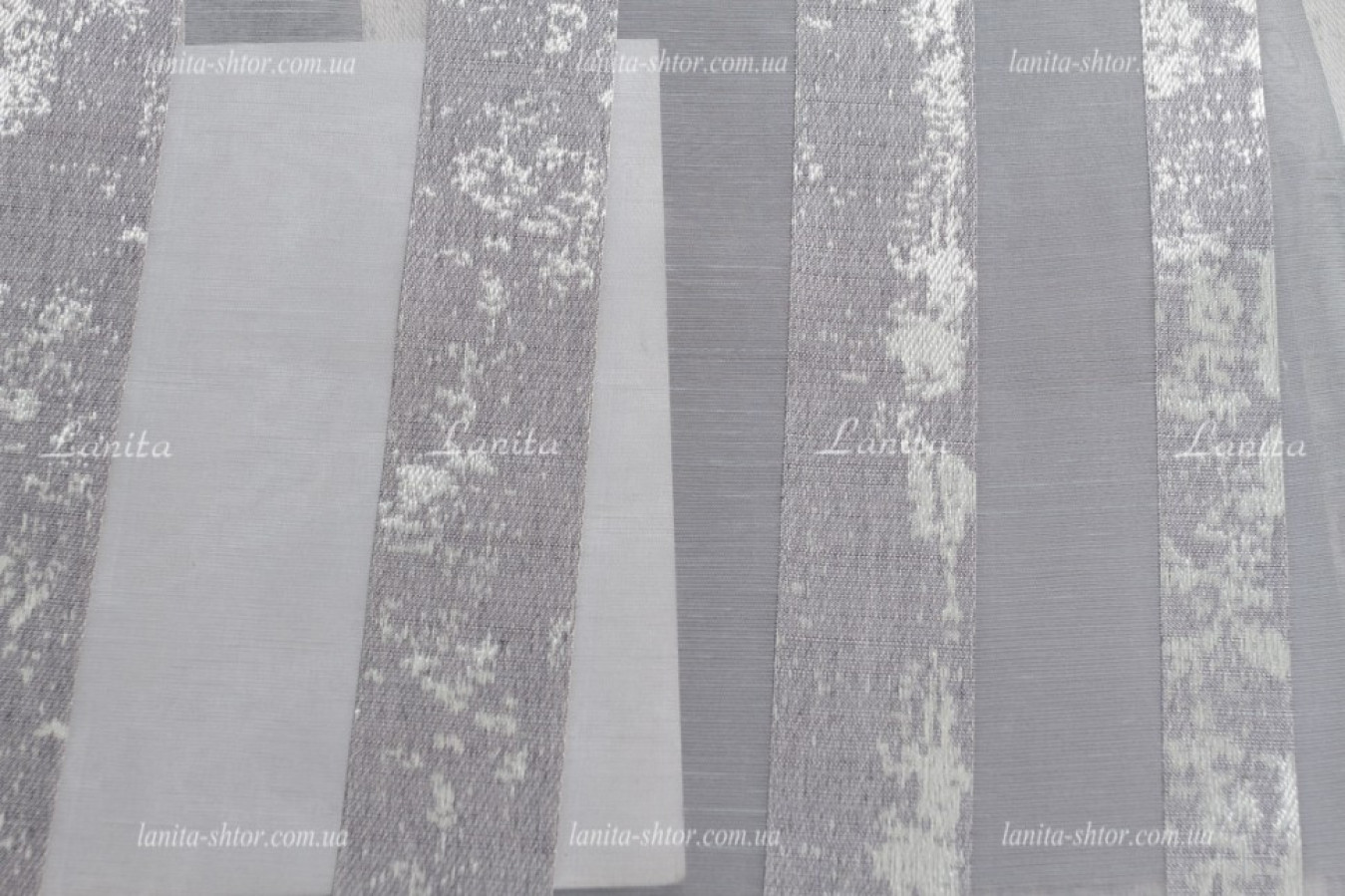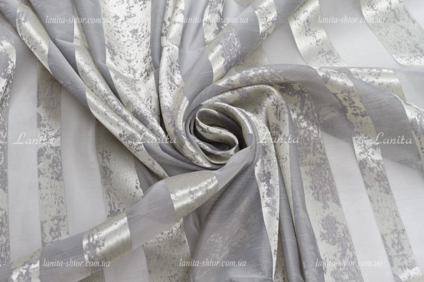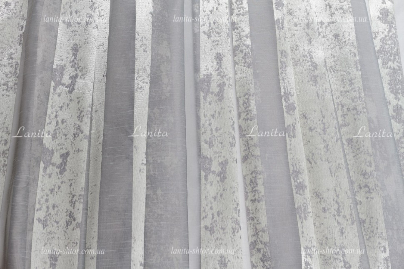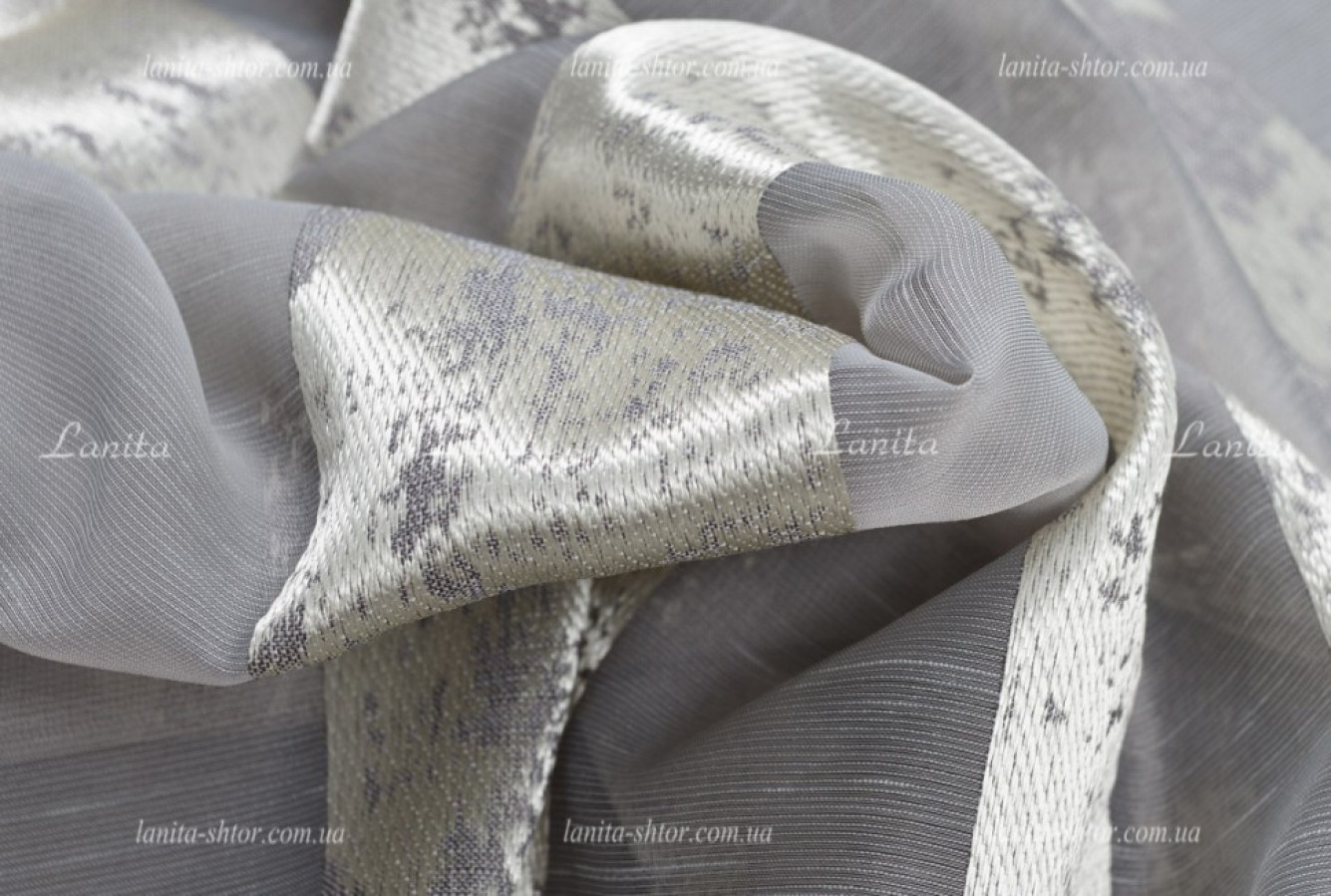 Молочно-серый турецкий тюль с вертикальными полосками на основе матовой, полупрозрачной вуали. Полосы имеют плотную структуру, выполнены в виде мраморного узора, благодаря вплетению глянцевых волокон в основу. Ткань характеризуется наилучшими текстильными характеристиками и высоким качеством. Тюль прекрасно ложится в ровные струящиеся складки при драпировках, а глянцевый отблеск поверхности придает ему эффектный и выразительный вид.