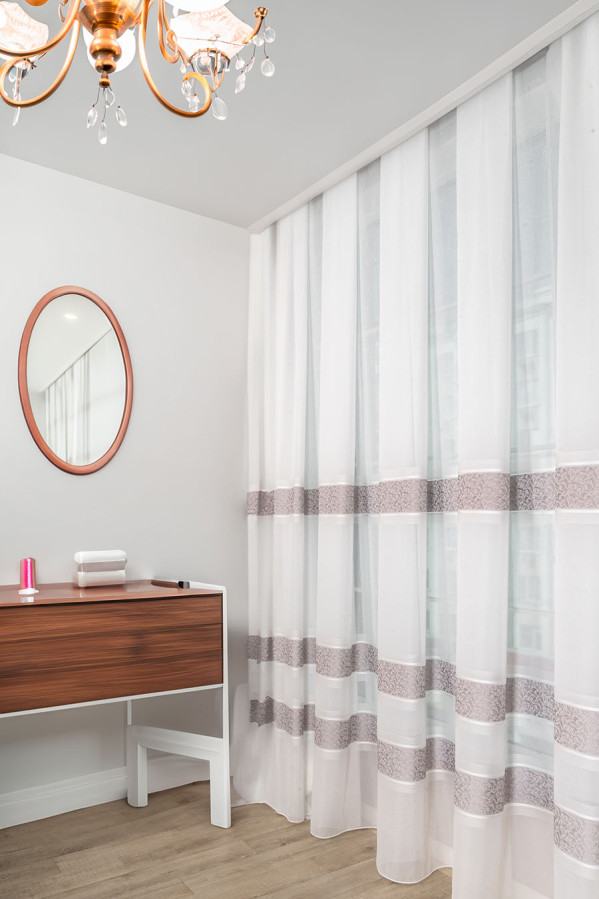 Тюль. Для определения необходимого количества метров тюля на окно необходимо учитывать длину карниза, плотность тюля и густоту рисунка на тюли. К примеру, если тюль с большим крупным рисунком, то на 1 метр карниза нужно брать, примерно, 2-2,5 м/пог материала, чтобы рисунок не потерялся в складках и таким образом не смазался эффект от выбранного тюля. Если же тюль тонкая и однотонная, то ее можно набирать побольше, к примеру, на 1 метр карниза 2,5-3,5 м/пог материала.