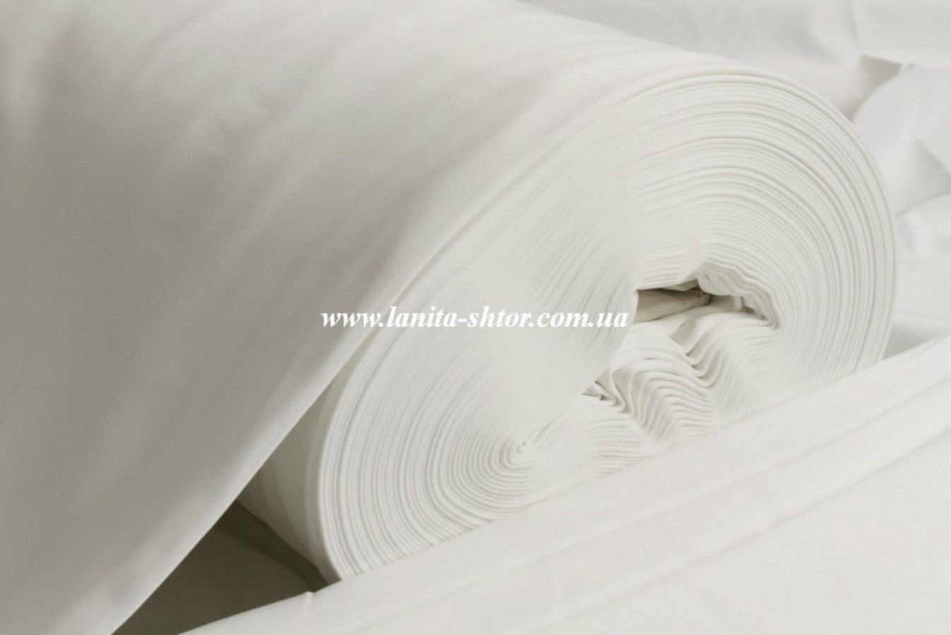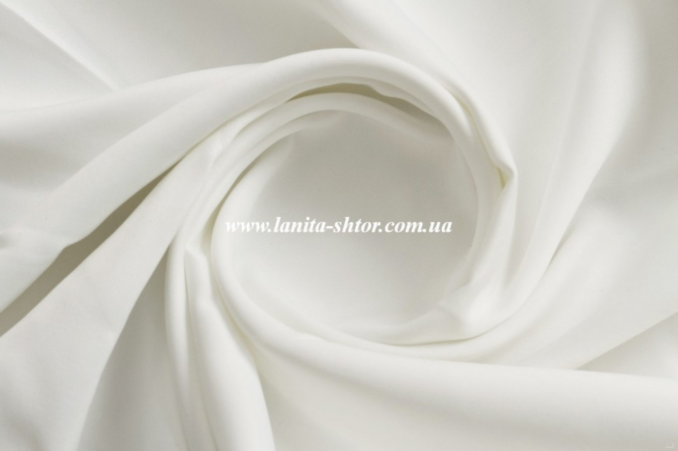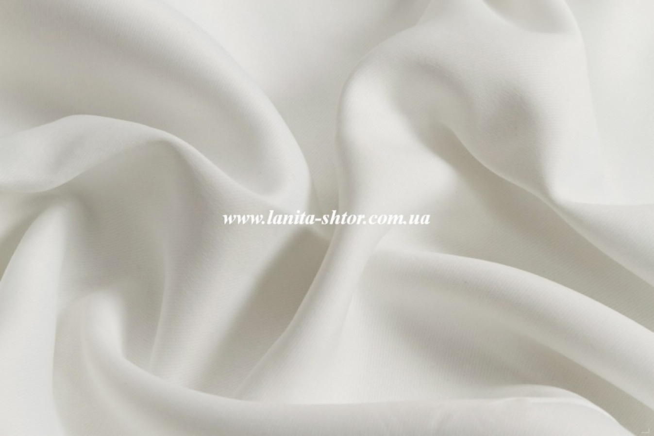 Белая ткань для штор из облегченной слоистой ткани в двухстороннем исполнении. Обе стороны штор имеют гладкую однородную поверхность с матовым отливом. От традиционного блэкаута этот материал отличается меньшей плотностью, на ряду с максимальной гибкостью и податливостью к драпировкам. Это свойство позволяет применять данный материал во многих сферах оформления интерьеров, так как ткань способна принимать любые формы без заломов и лишнего объема. Например, облегченный блэкаут широко используется для пошива скатертей для ресторанов, покрывал и др. А в качестве штор, демонстрирует замечательную глубину и выразительность воланов.