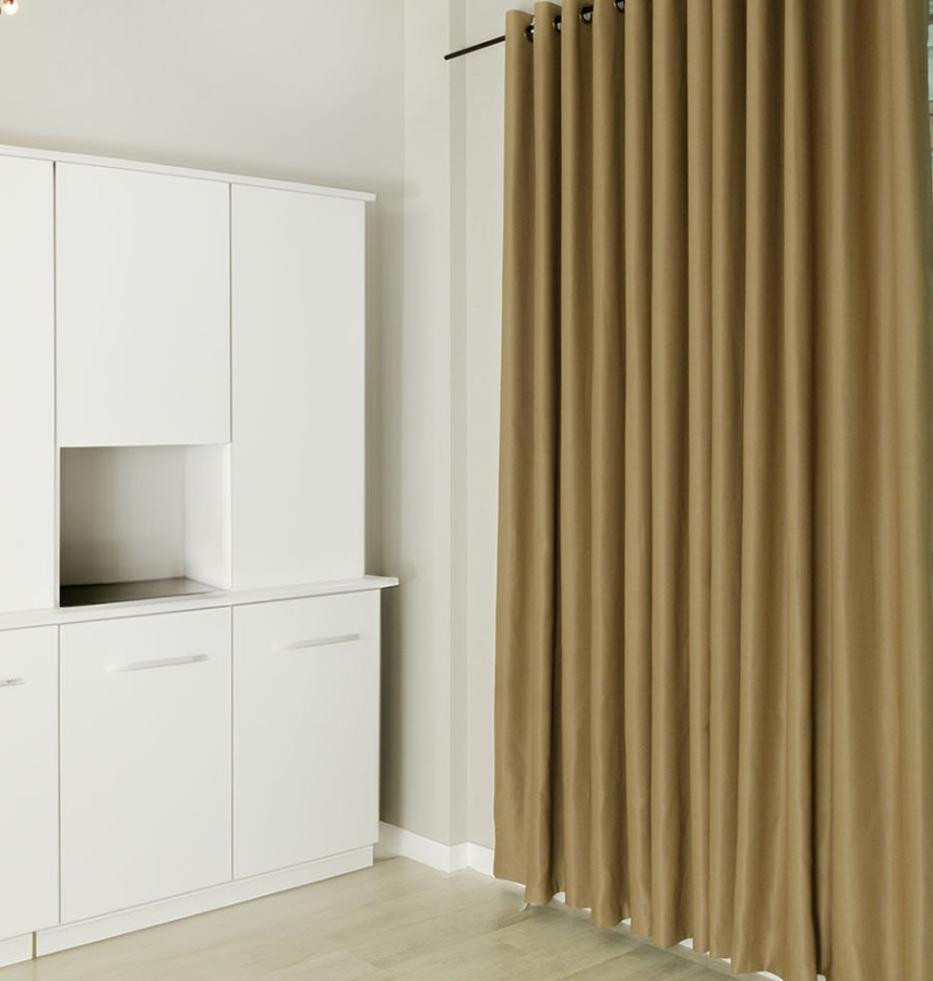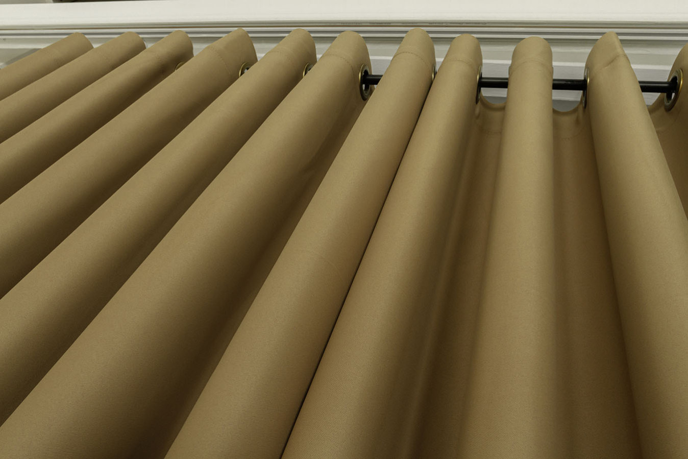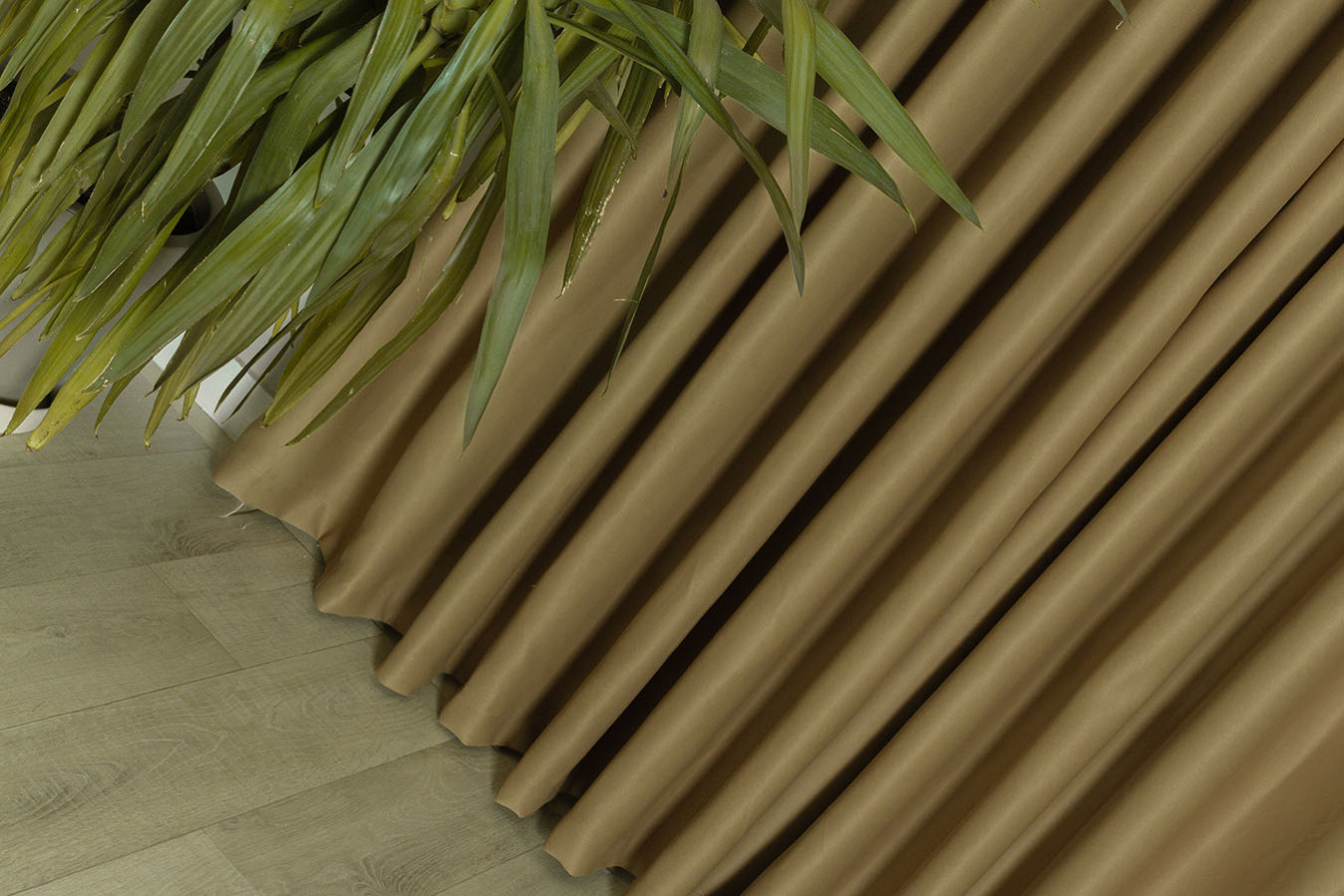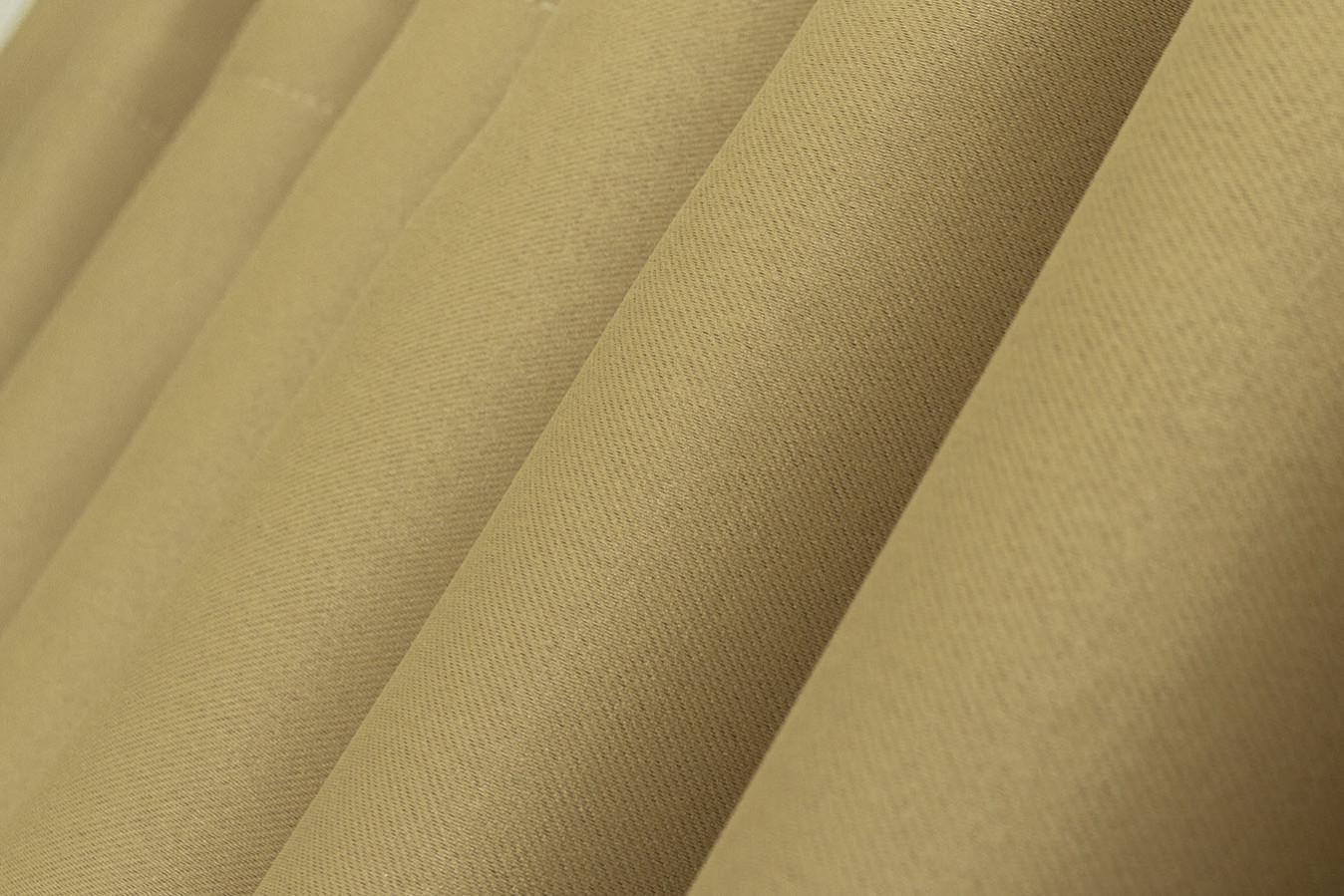 Однотонный блэкаут в двухстороннем исполнении с гладкой матовой поверхностью. Теплый и приятный бежево-золотистый оттенок ткани придает интерьеру свежий вид, и способен зрительно расширить маленькое помещение. Ровная поверхность ткани с нежным восковым отливом, придает складкам портьер особую глубину и выразительность. Материал отличается высокой плотностью, при сравнительно не большой толщине ткани. Это один самых доступных по цене вариантов украсить окна в элегантном стиле, придав им дорогой и эффектный вид.