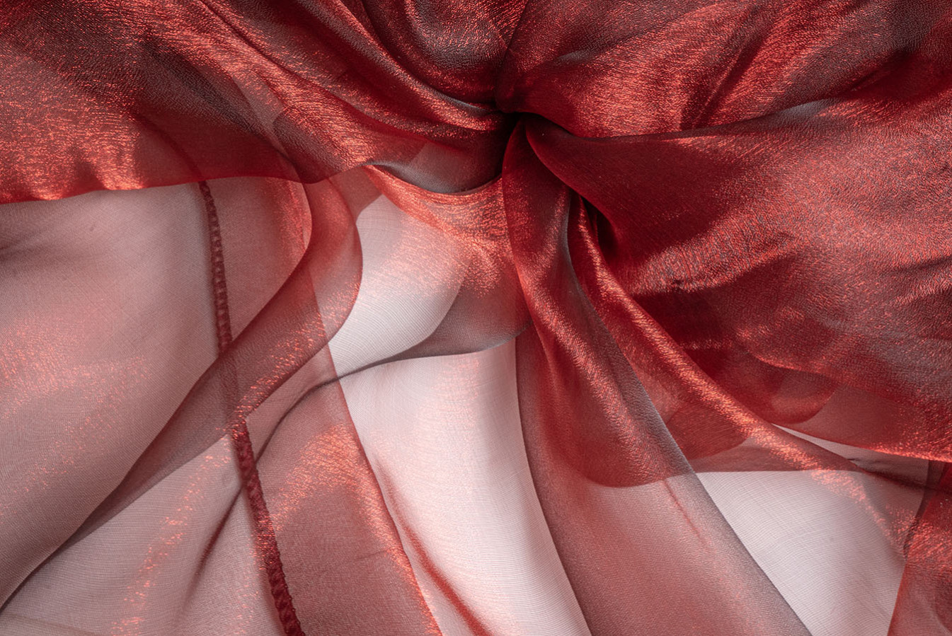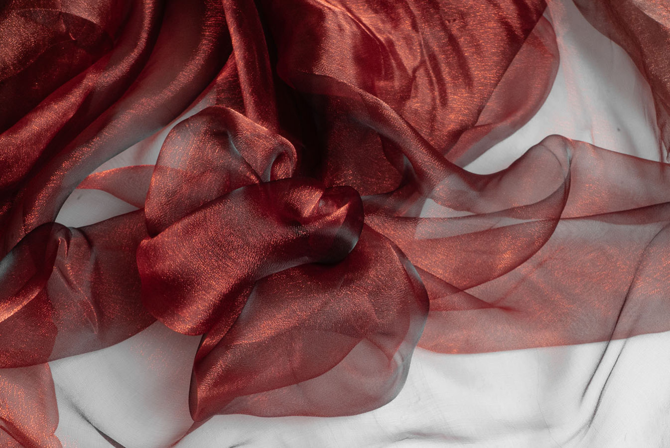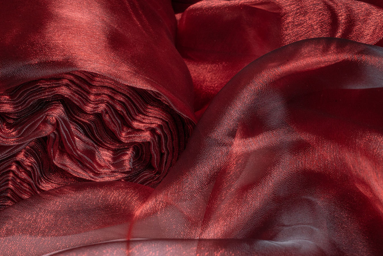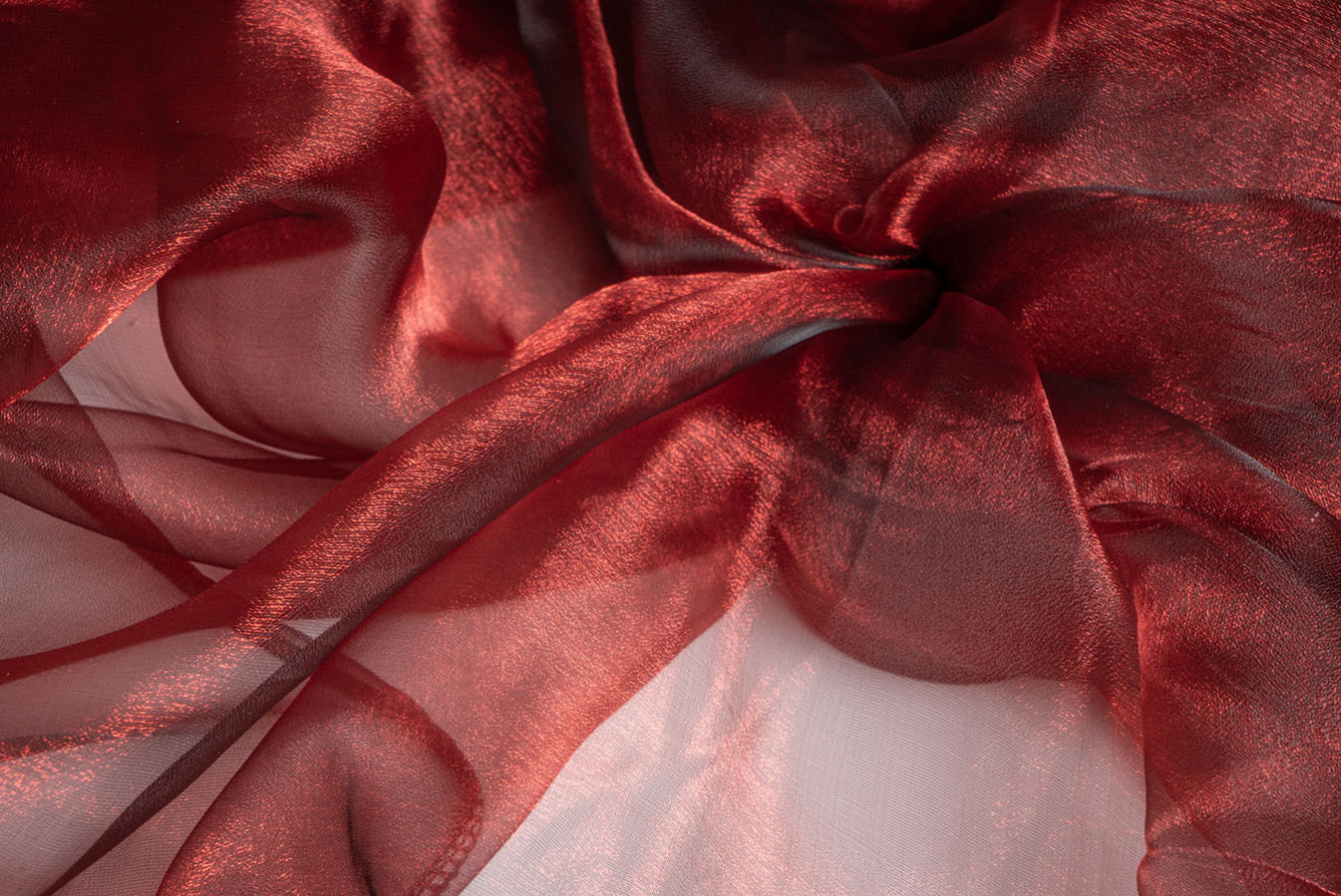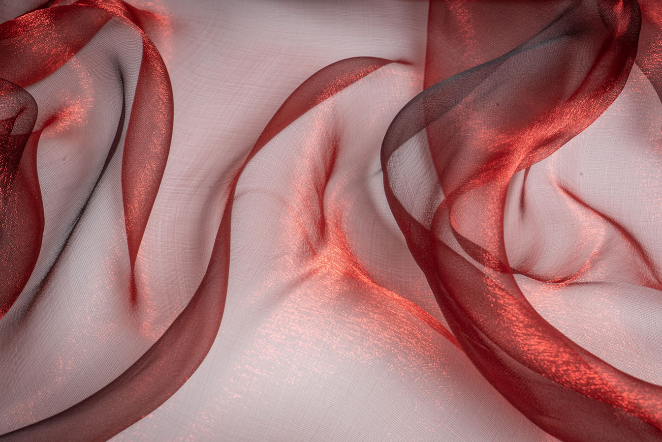 Бордовая органза манка с красноватым отблеском — прекрасное решение для создания теплой и уютной обстановки. Структура ткани имеет слегка шероховатую поверхность, а уникальное "органзовое" плетение волокон, создает красивые переливы сияющих оттенков. Ткань тонкая, прозрачная, немного жесткая на ощупь, ложится в крупные ровные складки при драпировке.