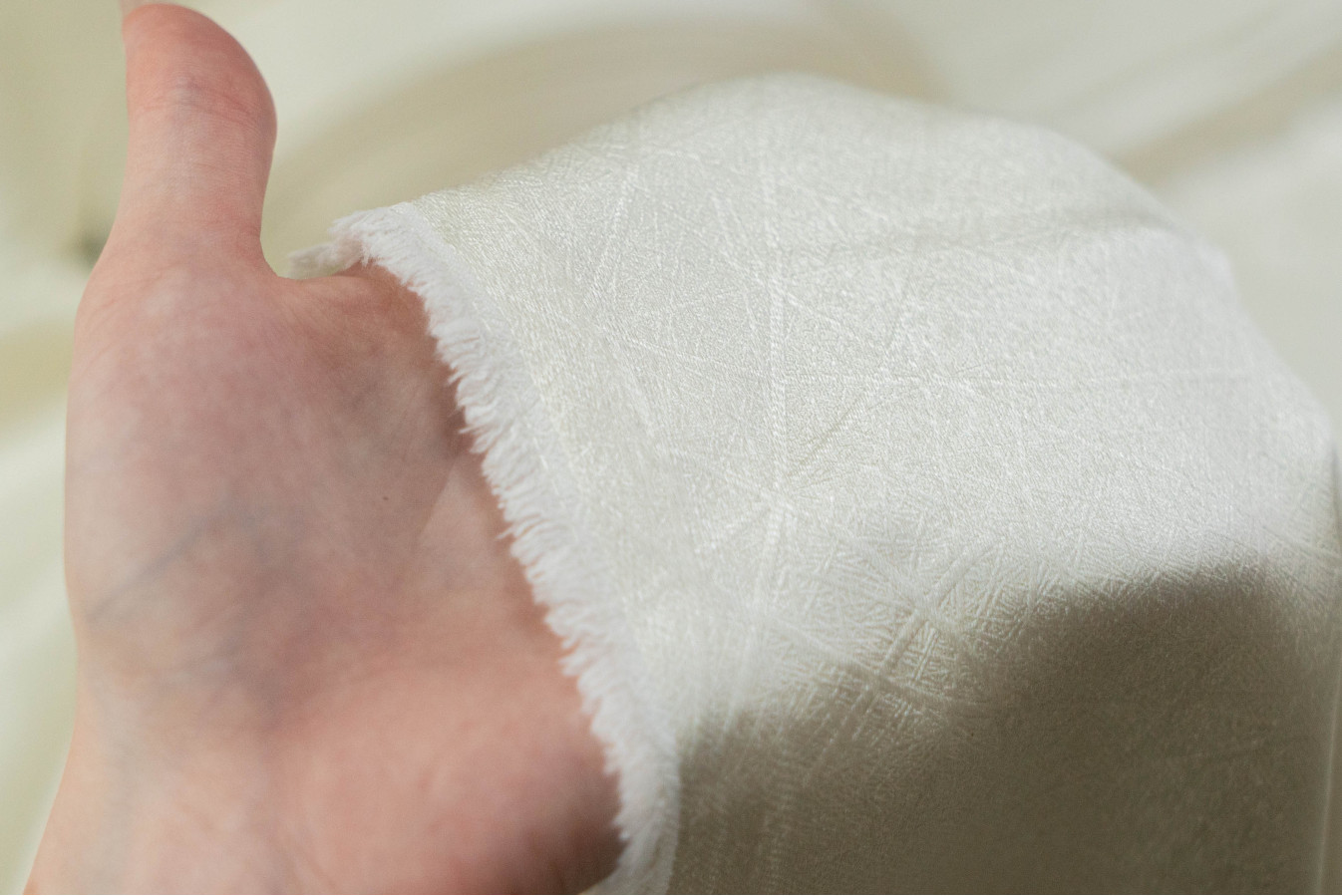 - лицевая сторона с паутинчатым узором на фактурном фоне, характеризующаяся нежным отливом на поверхности;