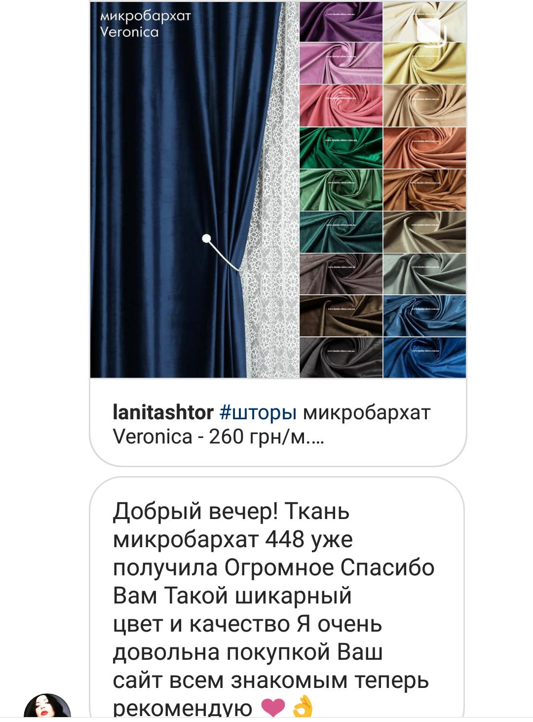 Тканина класна, колір яскравий, як на фото, натуральна і чудово захищає він яскравого ранкового сонячного проміння. Стала яскравим акцентом в спальні. Тому дуже рекомендую!!! Замовляла з пошивом на петлях, виглядає чудово. Окрема подяка за завжди якісний та вчасний пошив. Ви молодці!!!